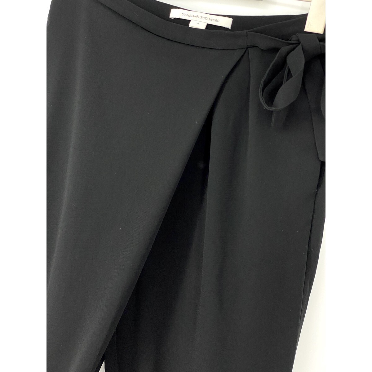 A7060/美品 春夏 Diane von Furstenbergダイアンフォンファステンバーグ トリアセテート リボンタイ 変形 スラックス パンツ4黒/レディース