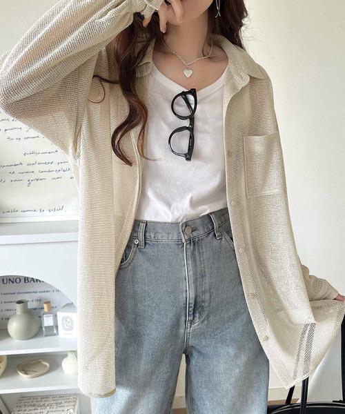 参考商品名:「風が透き通る」。比翼デザイン胸ポケットスラブメッシュシャツ(長袖)【冷房・ 紫外線・日焼け対策】