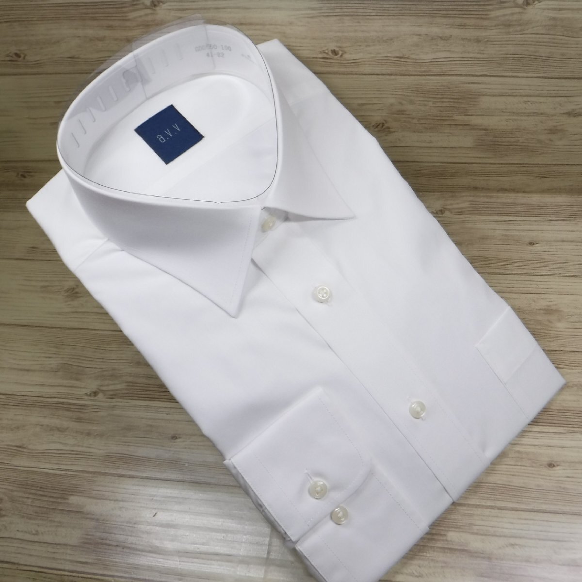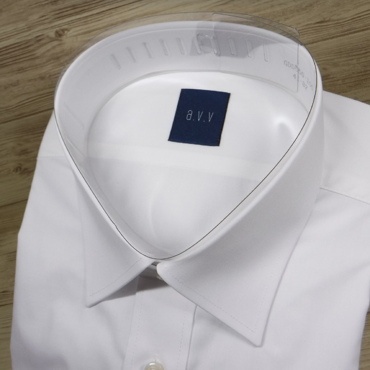 未使用新品の正規品です。人気のビジネスシャツをスッキリシルエットに。 衿も少し短めにして現代風に再アレンジ。冠婚葬祭 就活にも着用可能です。 形態安定加工を施している上に、3ヶ所テープ縫製で前ヨーク、アームホール、ポケットのシワを軽減。 長時間着用後もキリッと、清潔感溢れるVゾーンは好印象間違いなしです。素材は綿55%ポリエステル45%です。サイズは40-80でLで肩幅:46/胸回り:113/胴回り:100/腰回り:110/後ろ丈79です。目立たない程度のものですが、右襟横に保管の際の小さいうすよごれが見受けられます。