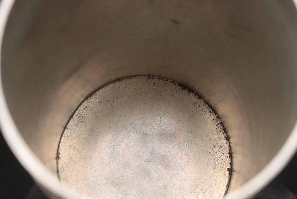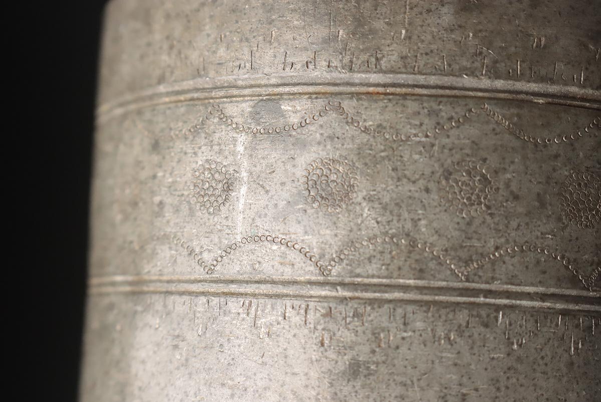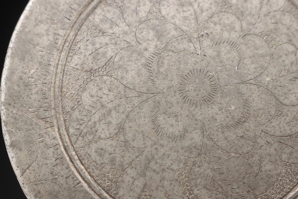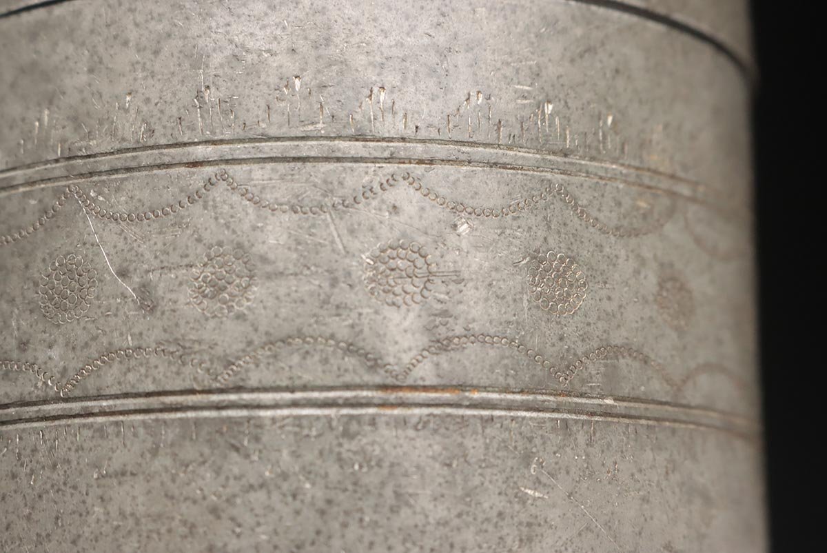 | ◆ 時代 古錫 花唐草彫文 茶筒 高15.5cm / 重945g・茶入・茶壺・茶壷 茶器 煎茶道具 古美術 ◆