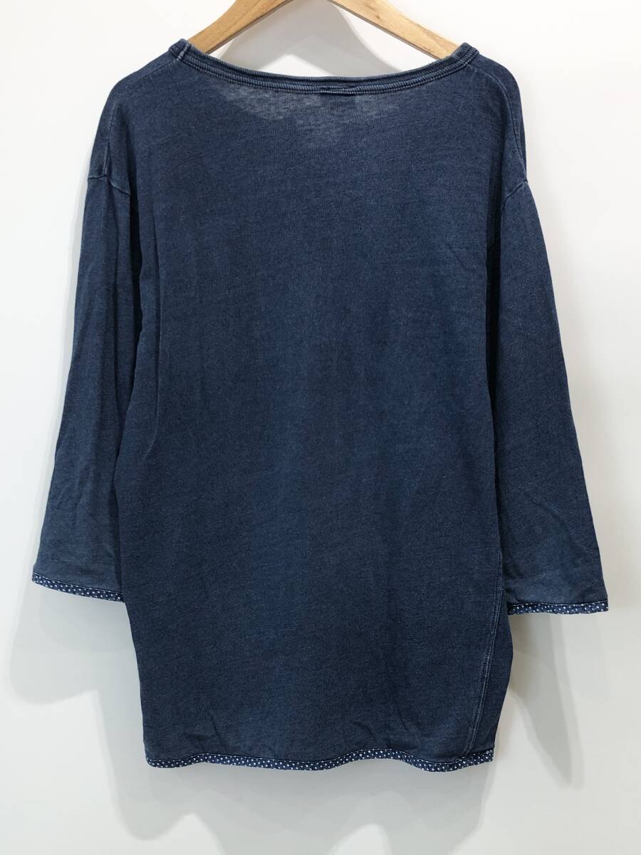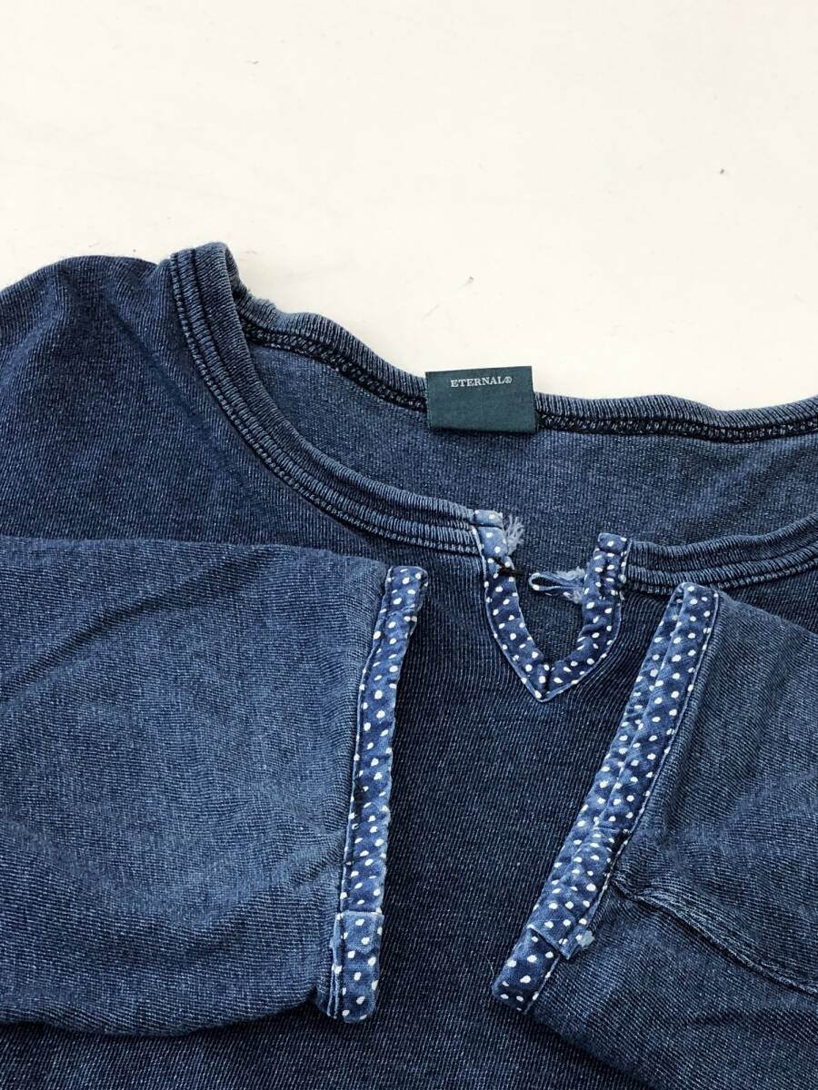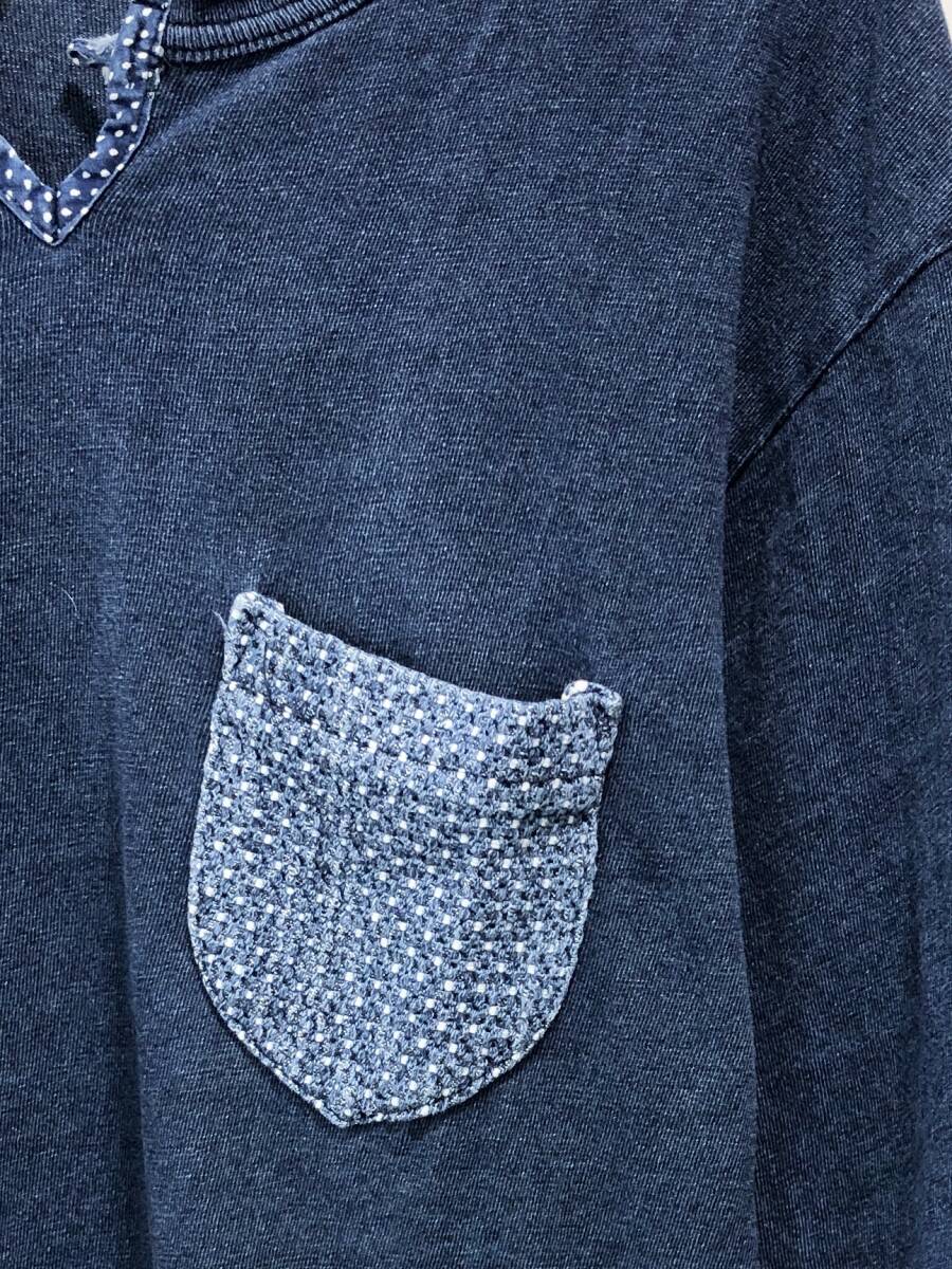 備中倉敷工房 ETERNAL 藍染め 七分袖 Tシャツ ロンT 胸ポケット付き ドット柄 切替 インディゴブルー ET-45 エターナル SIZE:2■1120C |