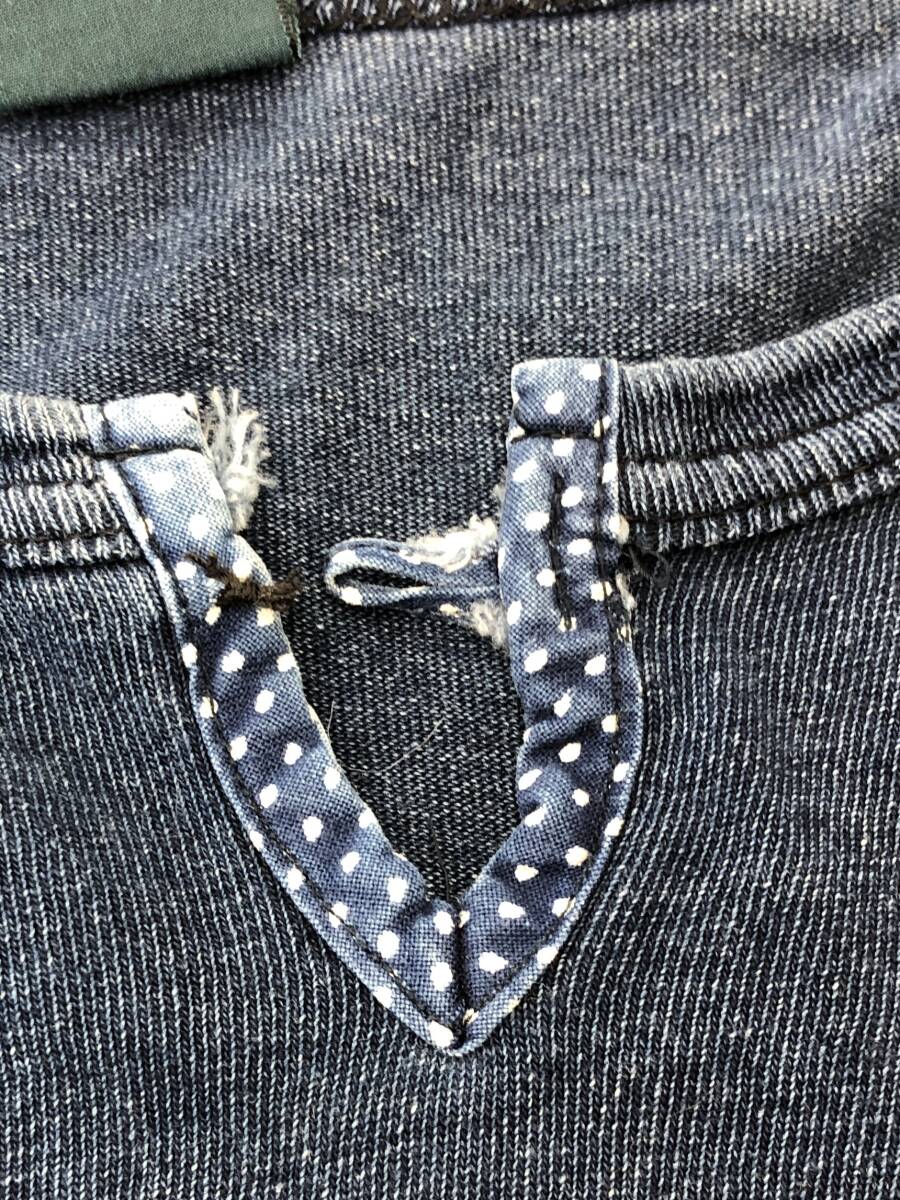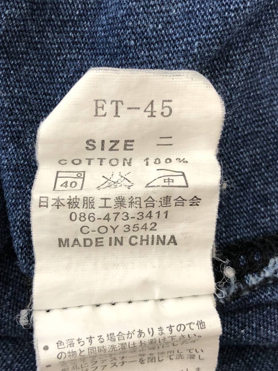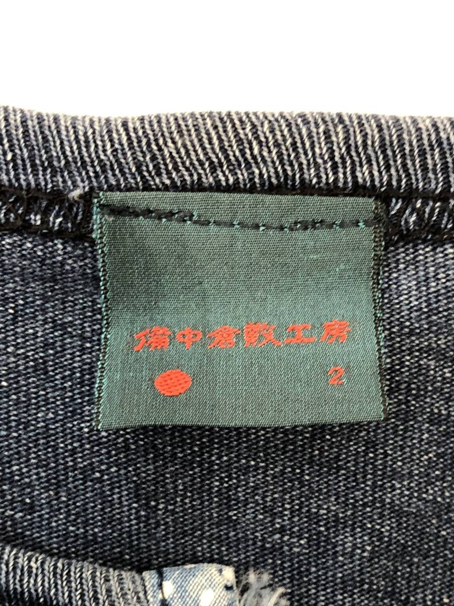 備中倉敷工房 ETERNAL 藍染め 七分袖 Tシャツ ロンT 胸ポケット付き ドット柄 切替 インディゴブルー ET-45 エターナル SIZE:2■1120C |