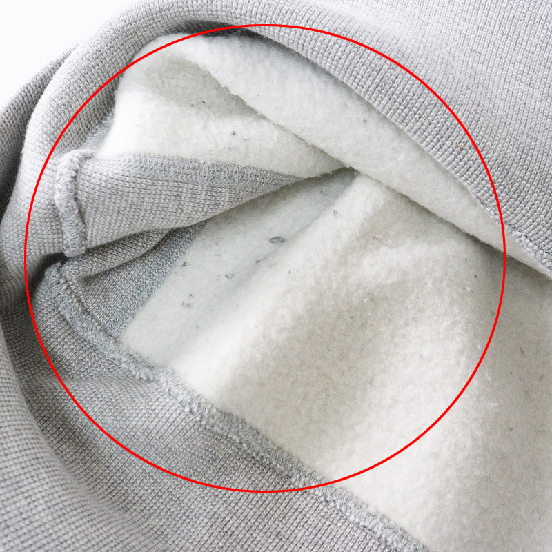 ブランドタグに汚れ、裏毛に毛玉が見受けられます。