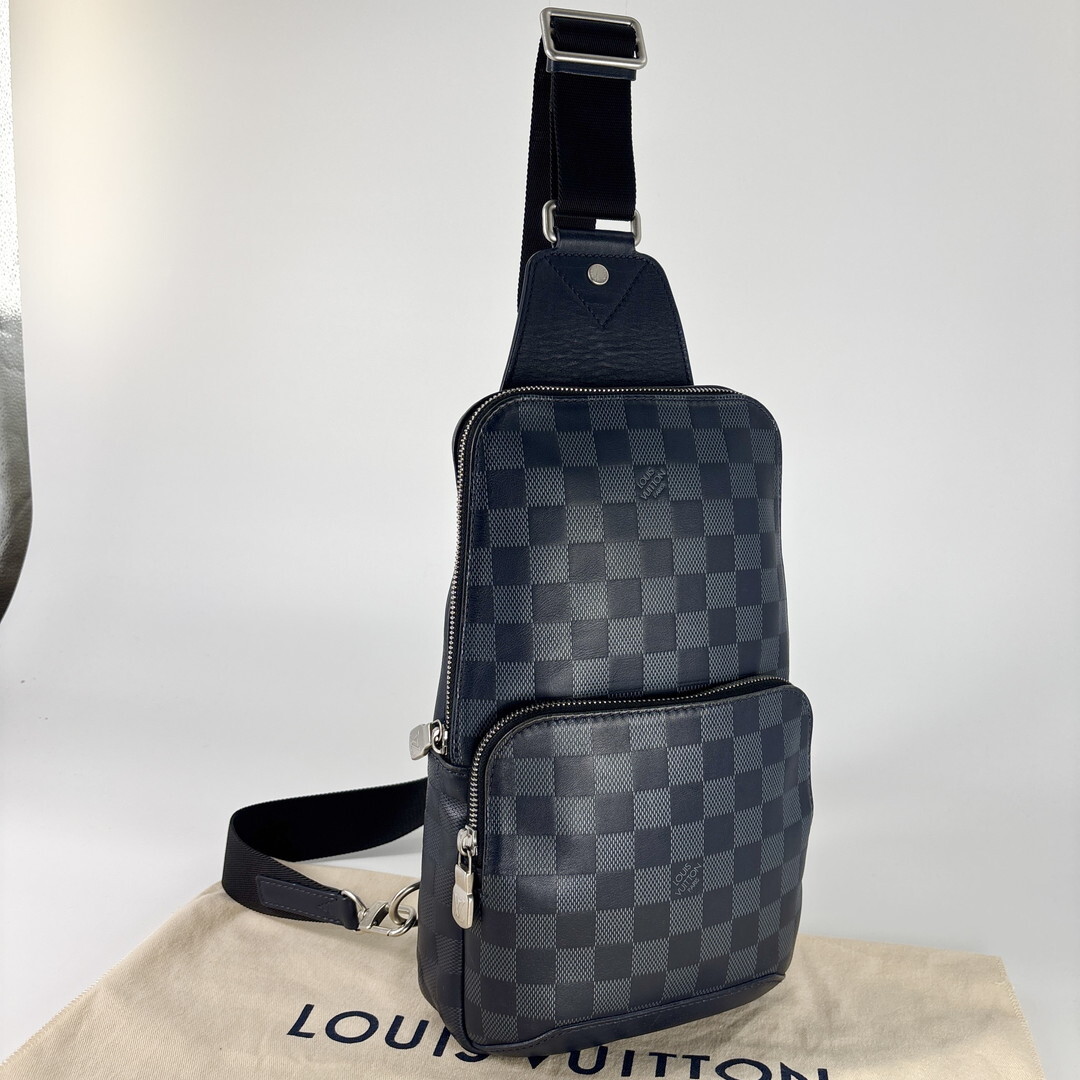 新品同様 Louis Vuitton ルイヴィトン N40097 アヴェニュースリングバッグ ダミエアンフィニ ネイビー ボディバッグ メンズ ショルダー