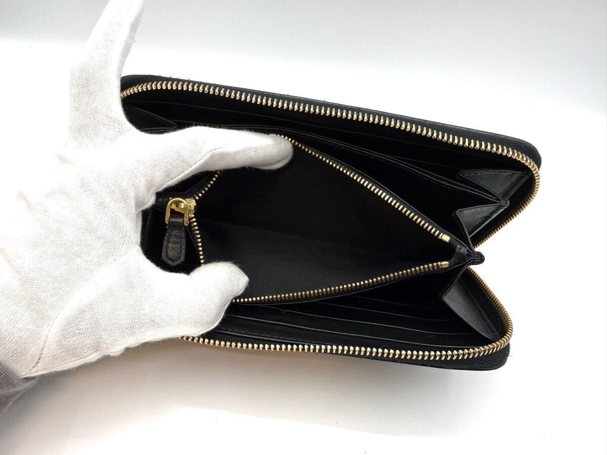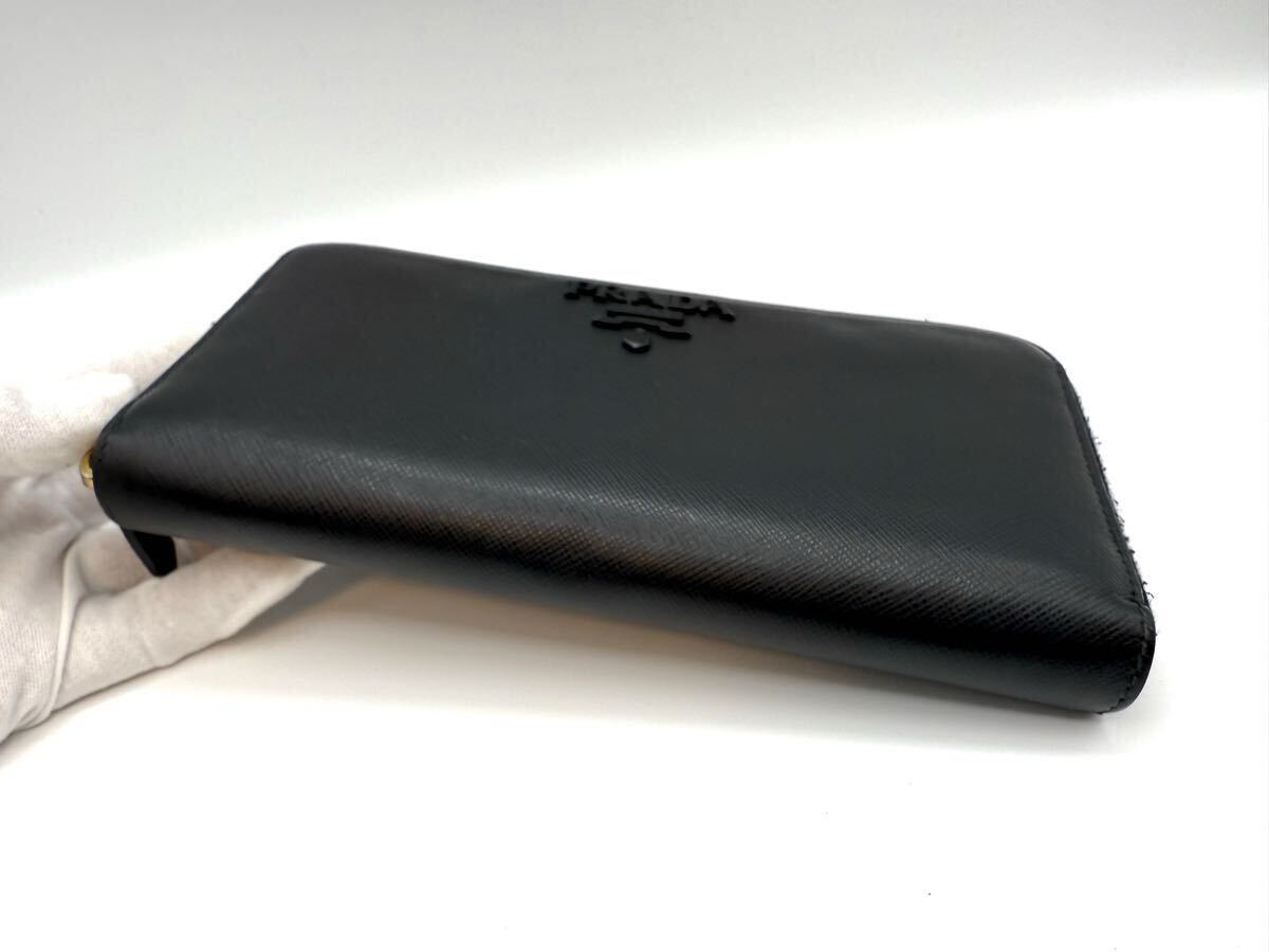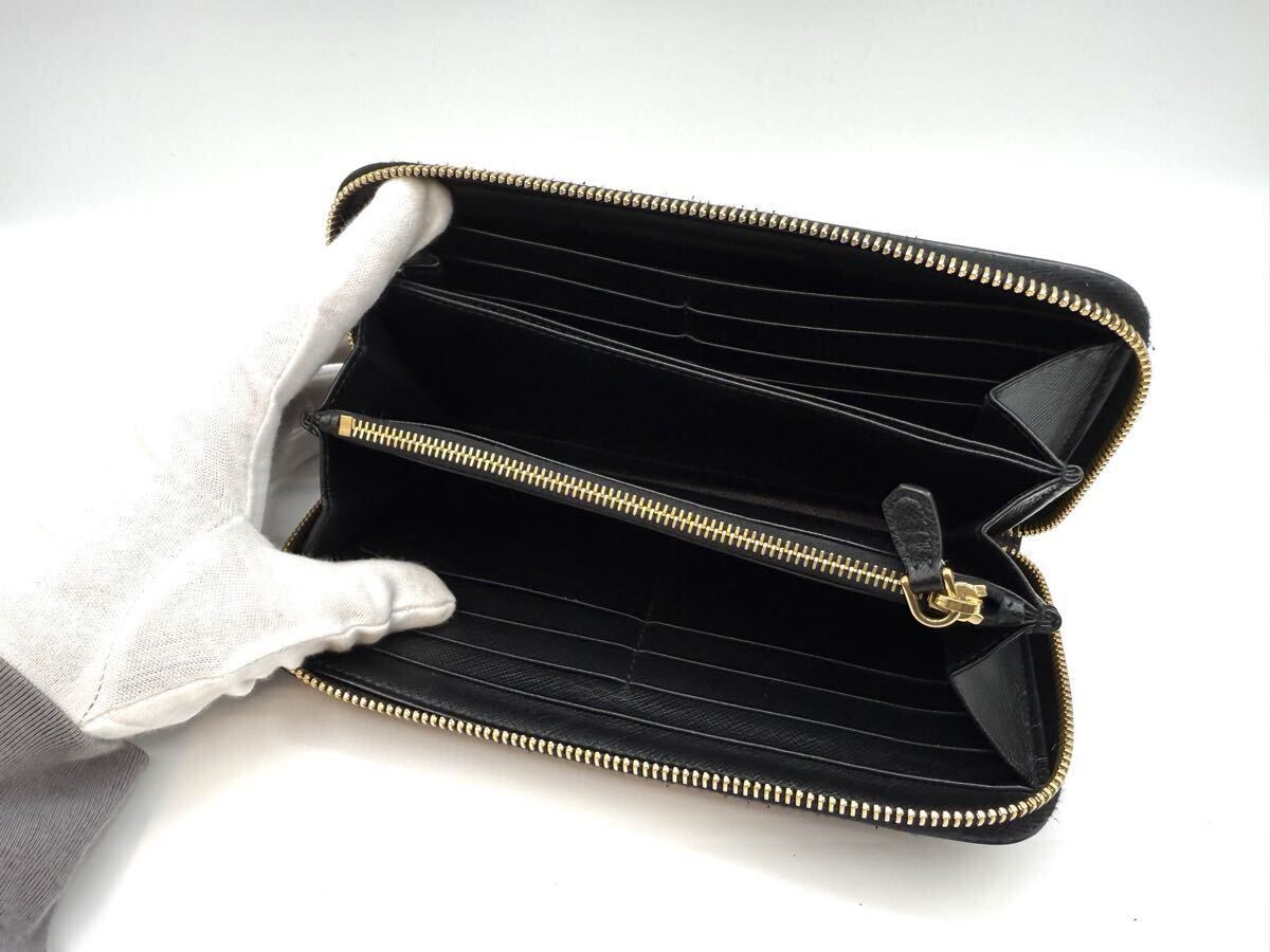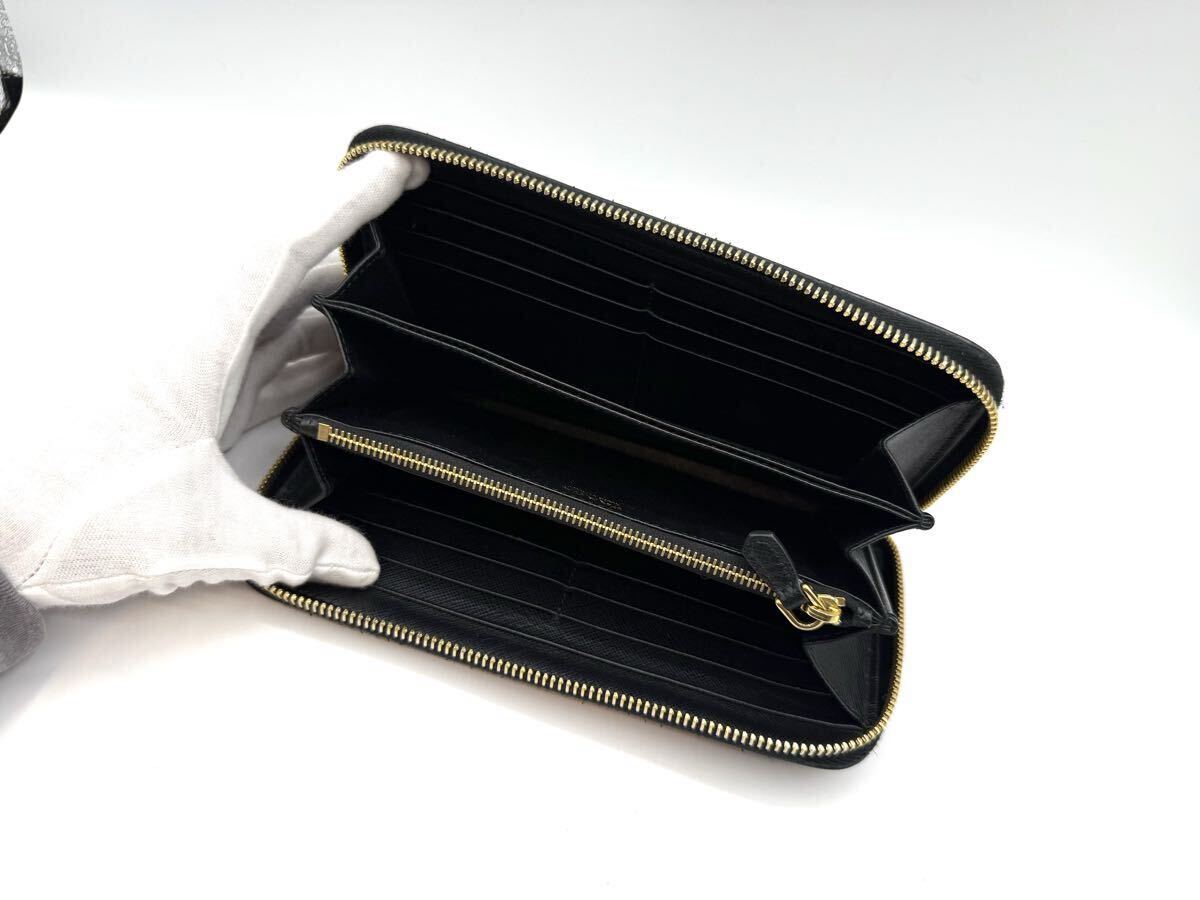 1128 極美品/近年モデル PRADA プラダ 長財布 ラウンドファスナー サフィアーノ ロゴ ブラック 黒 本革 レザー メンズ ビジネス 多収納