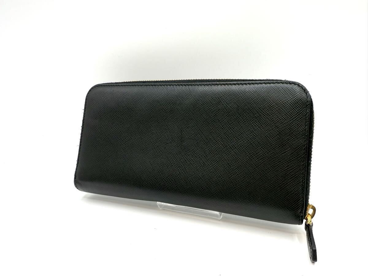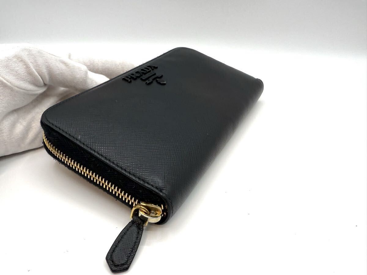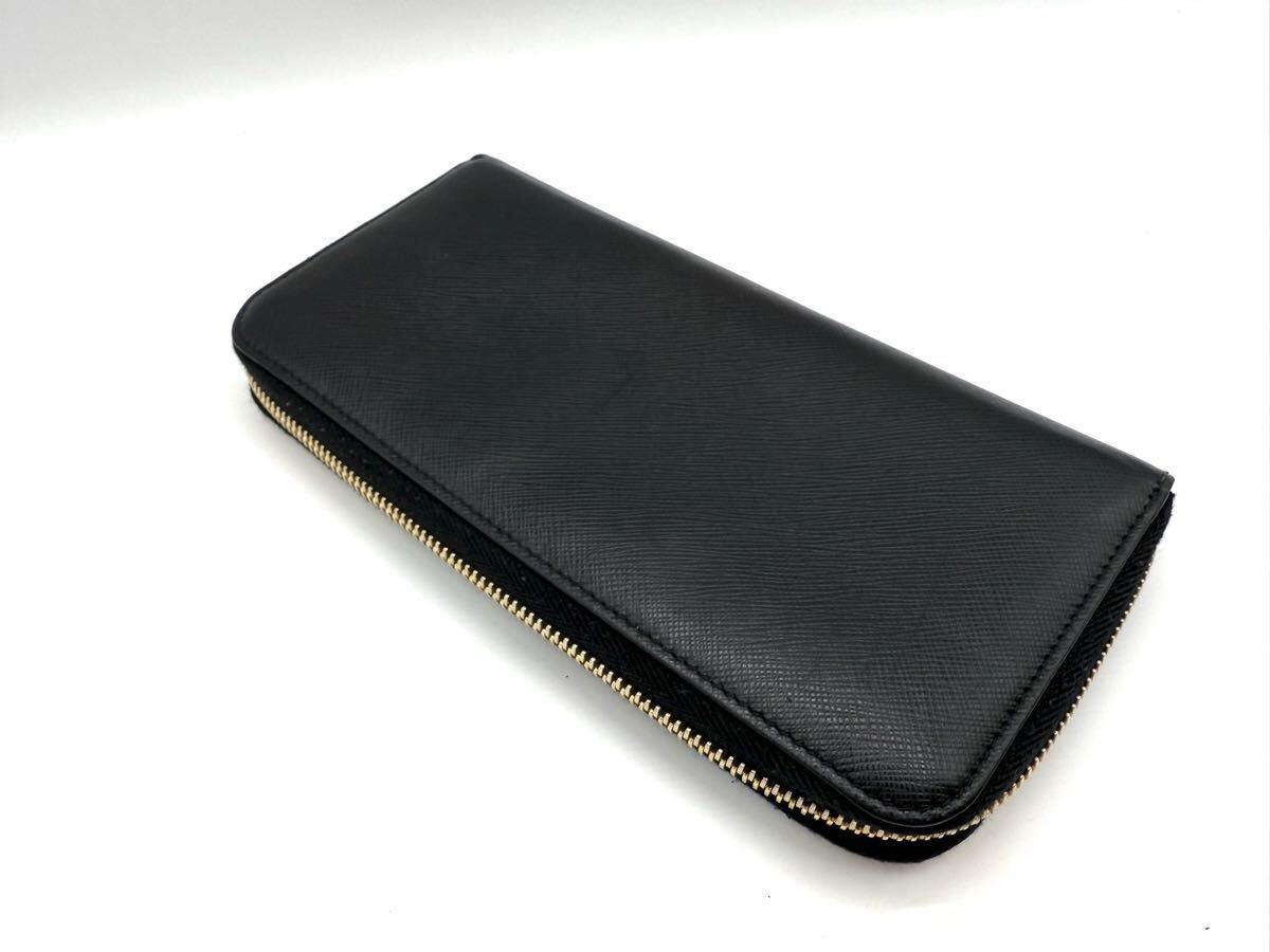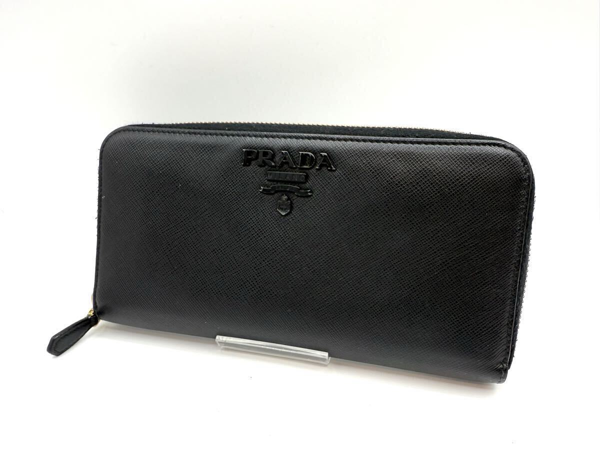 1128 極美品/近年モデル PRADA プラダ 長財布 ラウンドファスナー サフィアーノ ロゴ ブラック 黒 本革 レザー メンズ ビジネス 多収納