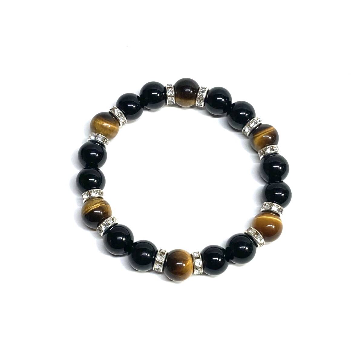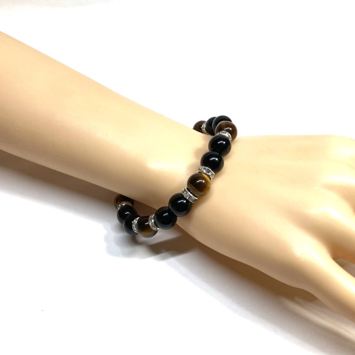 モリオン&タイガーアイ パワーストーン ブレスレット 天然石ブレス (シルバー) 10mm メンズ・レディース 厄除け 金運 ☆