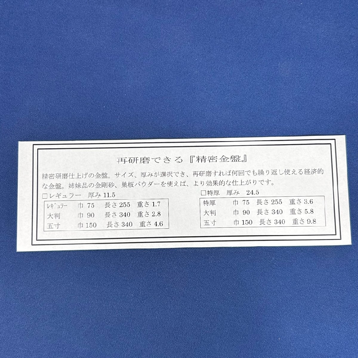 【常三郎】金盤 サイズ:レギュラー(75×255mm) 厚み:レギュラー(板厚:11.5mm) より正確なウラ研ぎ、鏡面加工に最適【未使用/長期保管品】