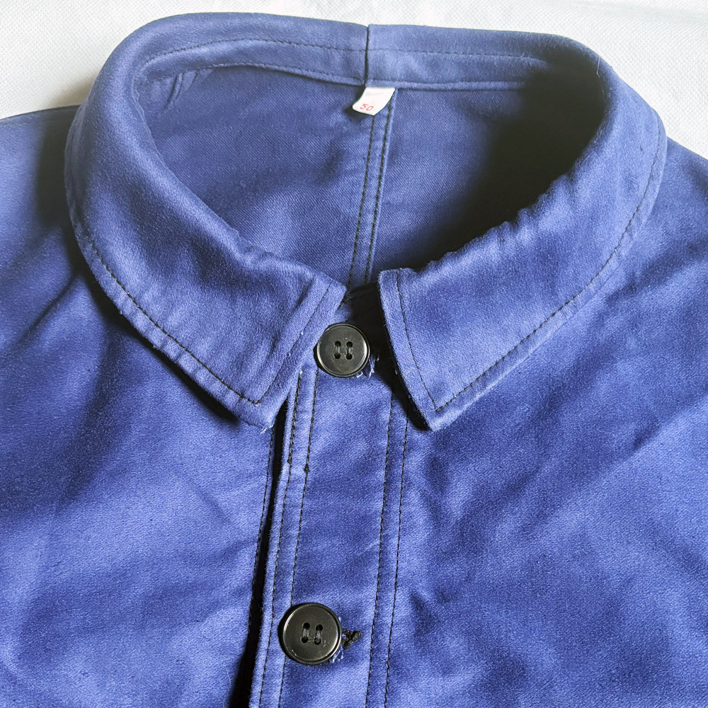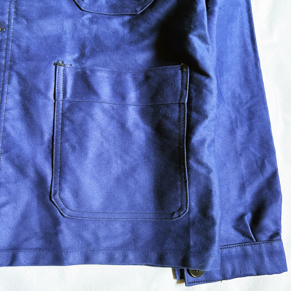 モンサンミッシェル製のビッグサイズ &ニアミント!推定50年代後期~60年代の物と思われる、フレンチブルーモールスキンチョアジャケットが入荷して参りました。しかもゆったりと羽織る事が可能な大きめサイズの極上コンディション!