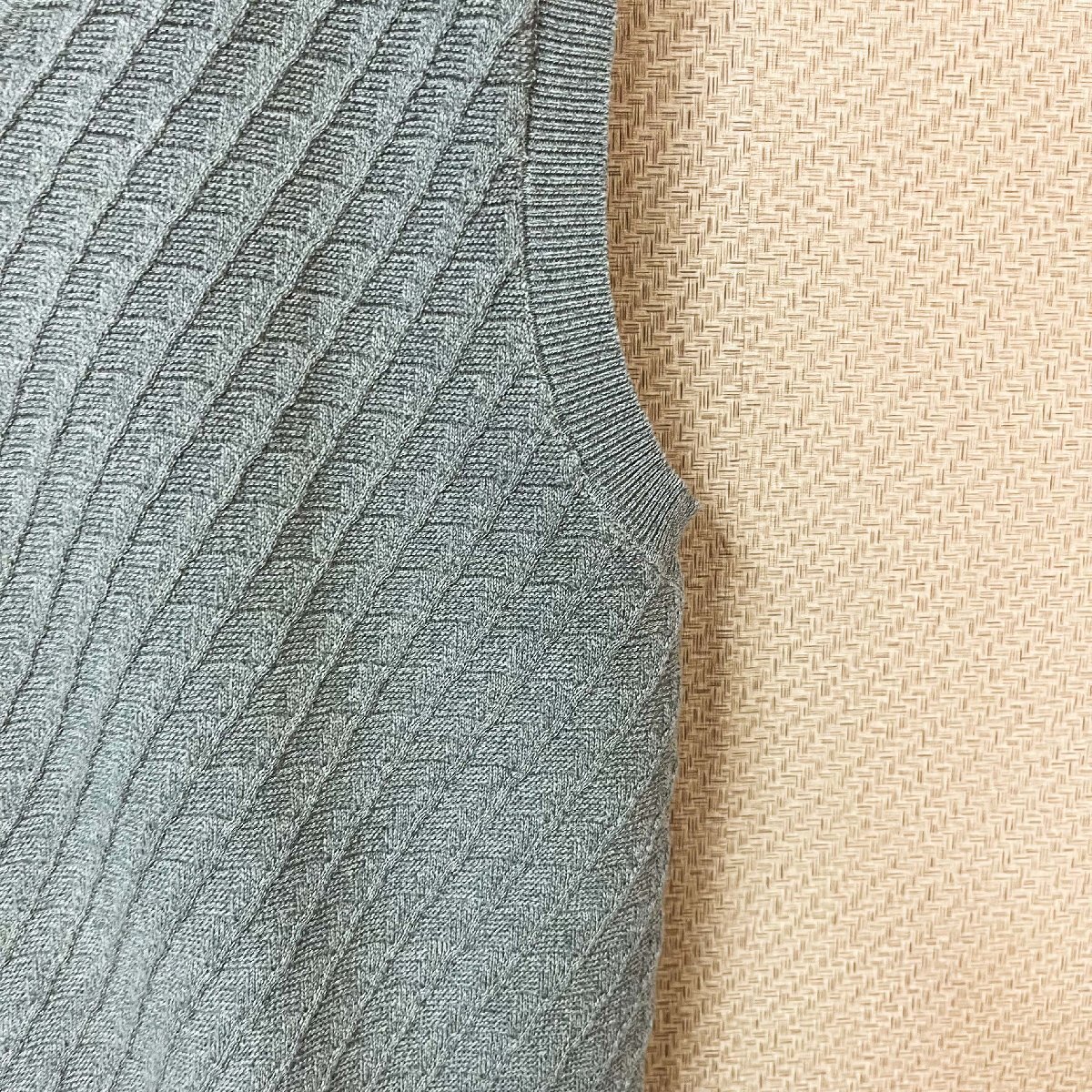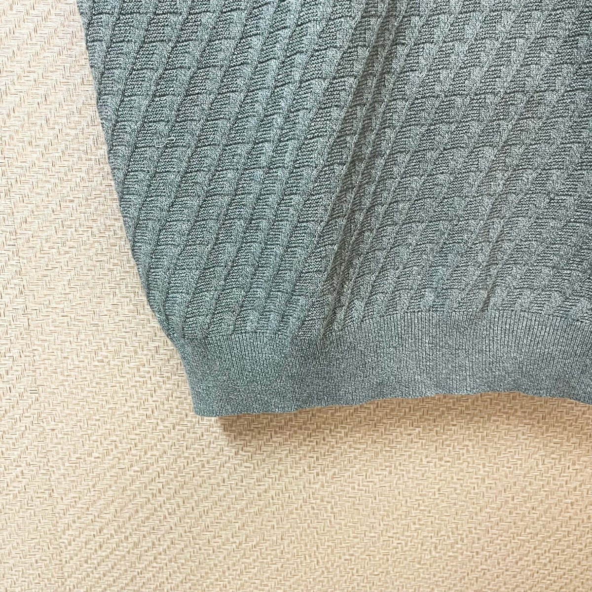 無地ベースのベーシックデザインでコーデに取り入れやすいです。Vネック仕様でシャツやカットソーとのレイヤードにぴったり。袖口・裾はリブ仕上げで、冷気を防ぎつつフィット感アップします。さりげないストライプ編みが、シンプルな中にも上品なアクセント。