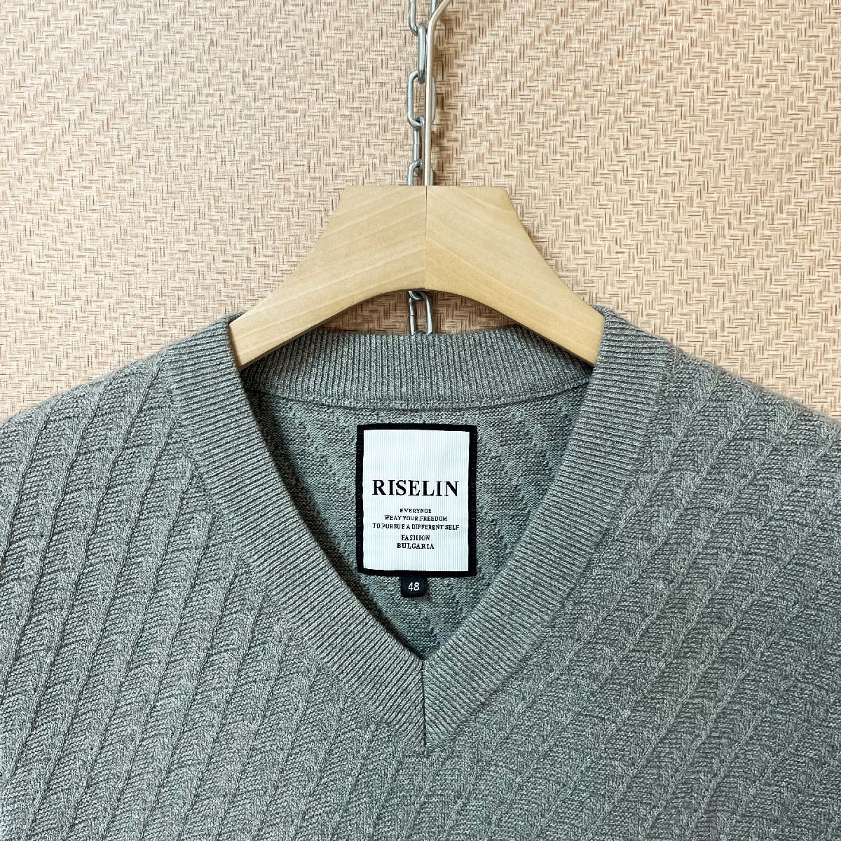 定番ヨーロッパ製※定価3万◆ブルガリア発※RISELIN ニットベスト ウール混 ソフト 暖かい Vネック ストライプ柄 カジュアル 秋冬 XL/50サイズ