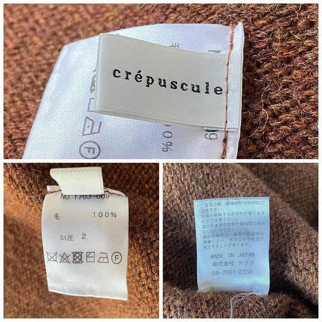 美品 crepuscule クレプスキュール シェットランド ウール ホールガーメント Vネック フルジップ ニットカーディガン メンズ(2) 茶 e-087