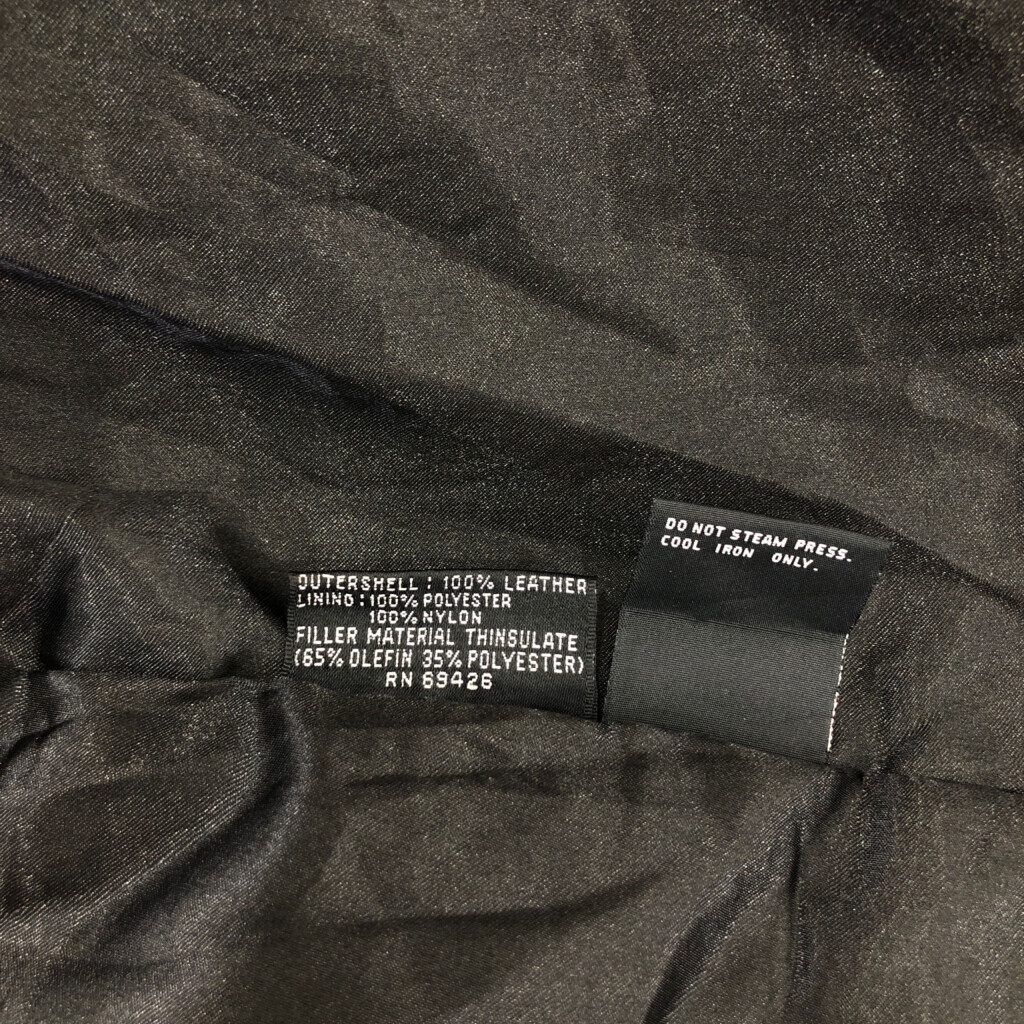 | 【商品管理番号】 R5963 【サイズ】 PL 【実寸サイズ】 着丈:約117cm 身幅:約61cm 裄丈:約79cm 袖下丈:約40cm 【主な素材】 表地 : レザー 裏地 : 13848 中綿 : 13897 【色】 ブラック 【仕様】 Thinsulate、ライナー接続可能 【状態】 【付属品】 ライナー付 | |||