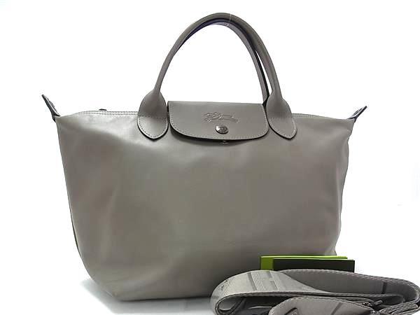 1円 ■美品■ LONGCHAMP ロンシャン ル プリアージュ エクストラ レザー 2WAY トート ハンドバッグ ショルダーバッグ グレー系 FU2949
