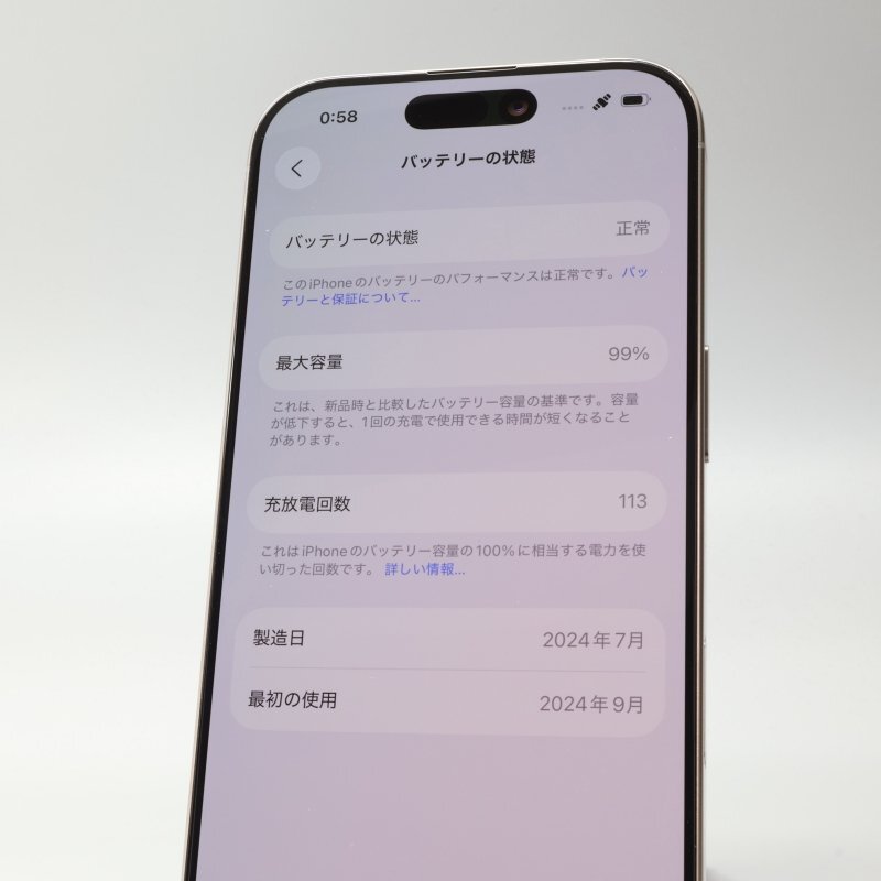 Apple iPhone16 Pro 256GB ナチュラルチタニウム A3292 3N746J/A バッテリ99% ■SIMフリー★Joshin8961【1円開始・送料無料】