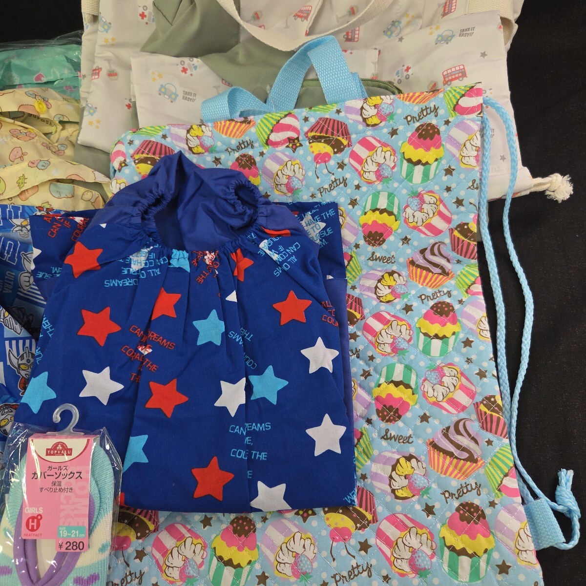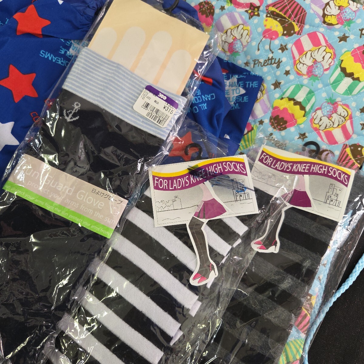 ★未使用保管品 子供雑貨 まとめ売り レインコート レッスンバッグ クリップ付ポケット 靴下 スモック ニーハイソックス 282-60