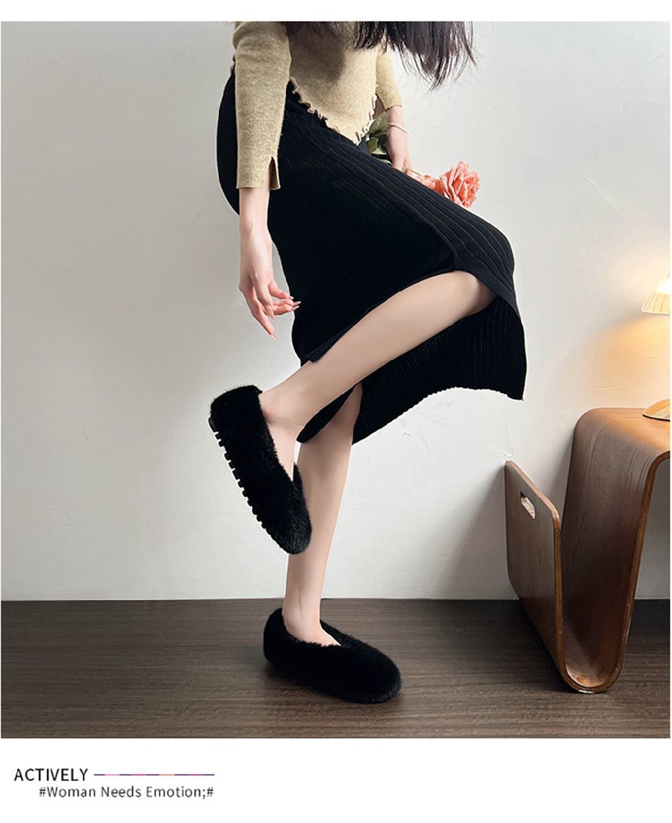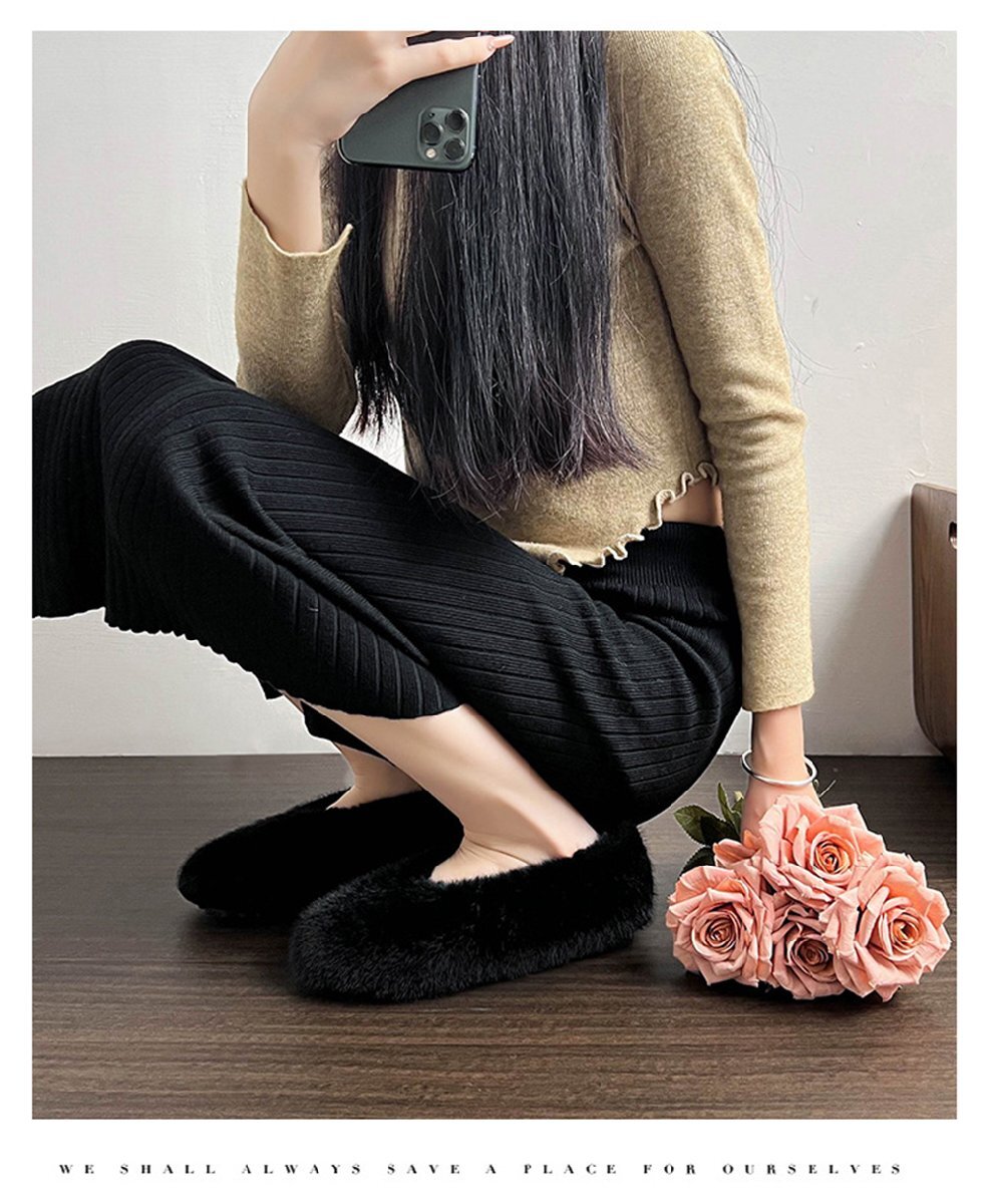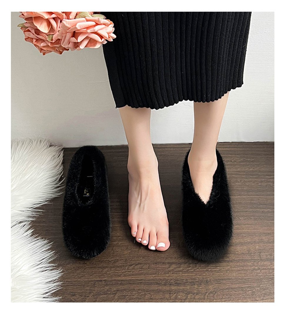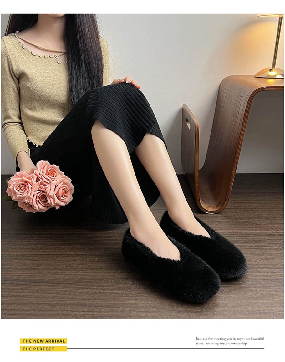ファーパンプス パンプス レディース 靴 ぺたんこ フラット フラットシューズ ローヒール ラウンドトゥ ブラック/24.5cm hw1384.2.24.5cm