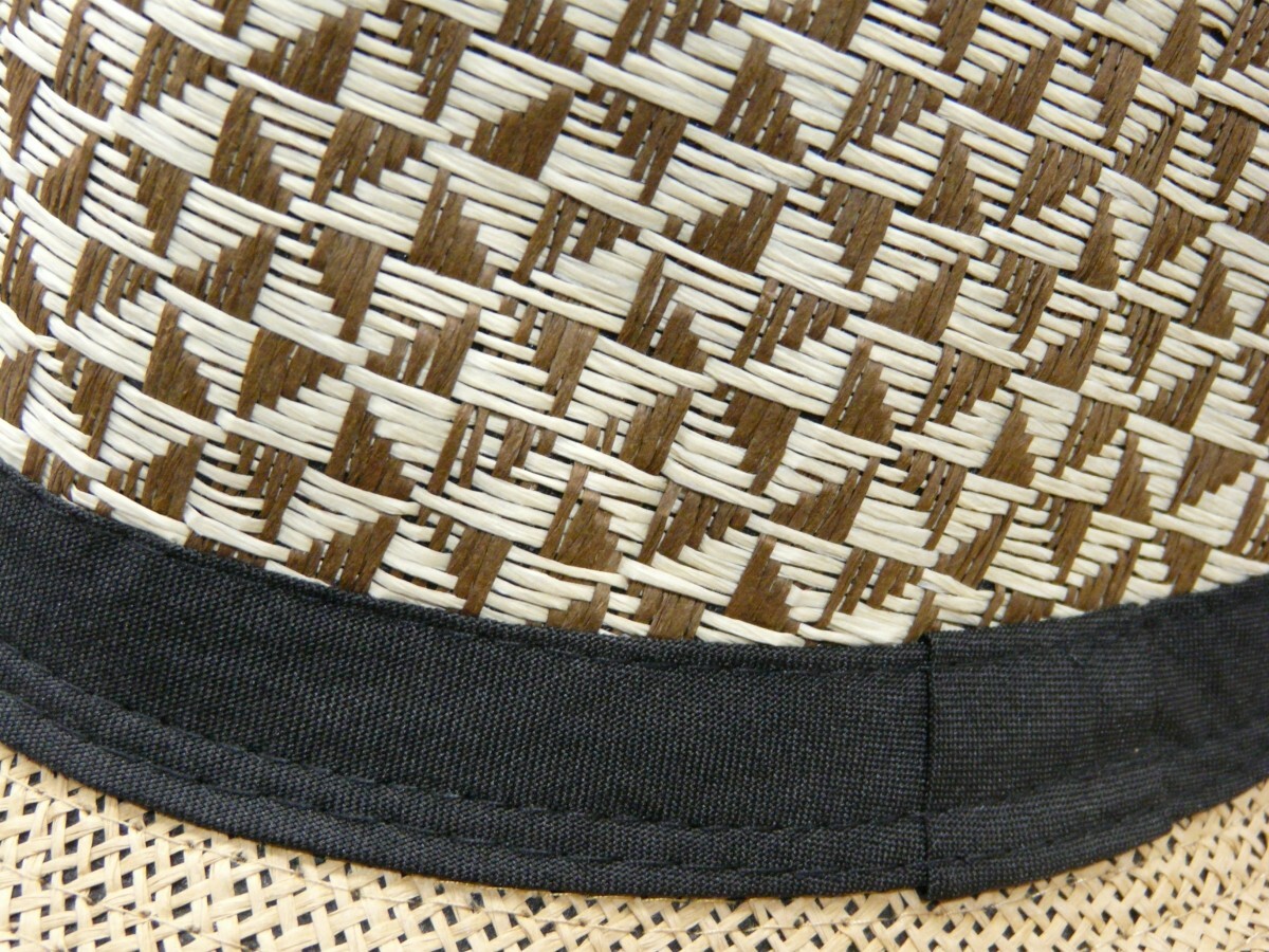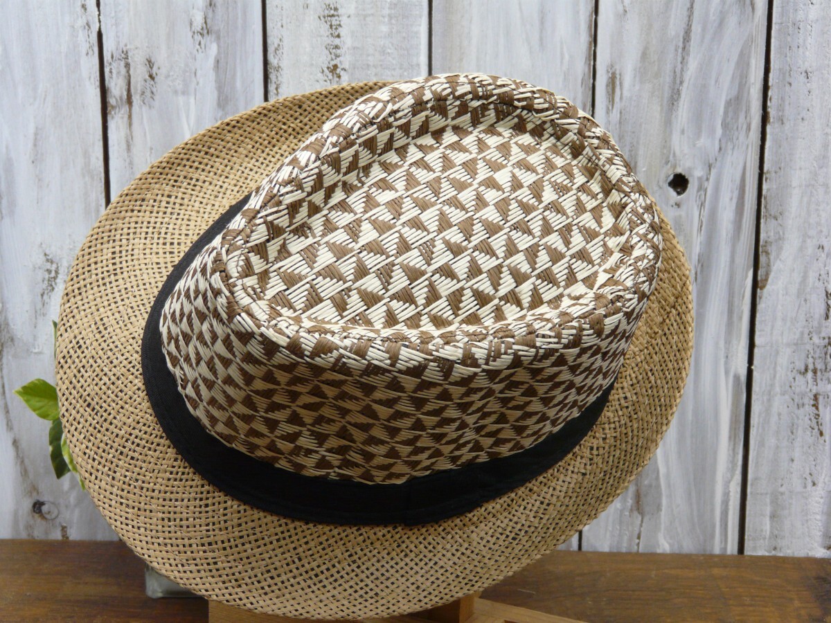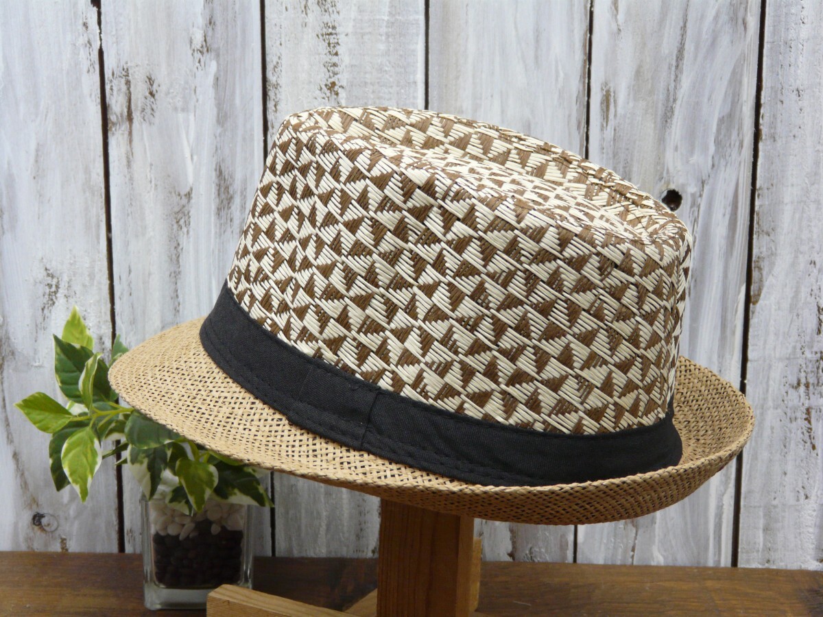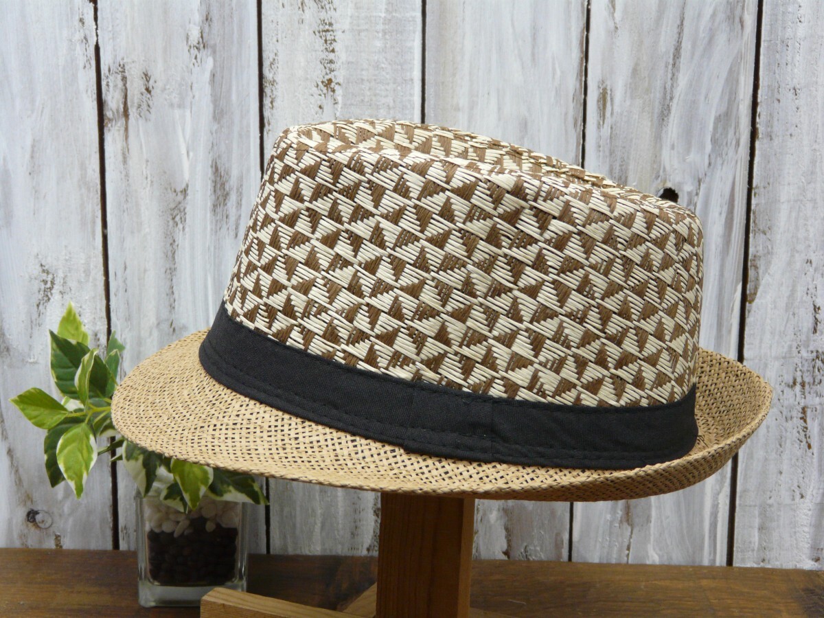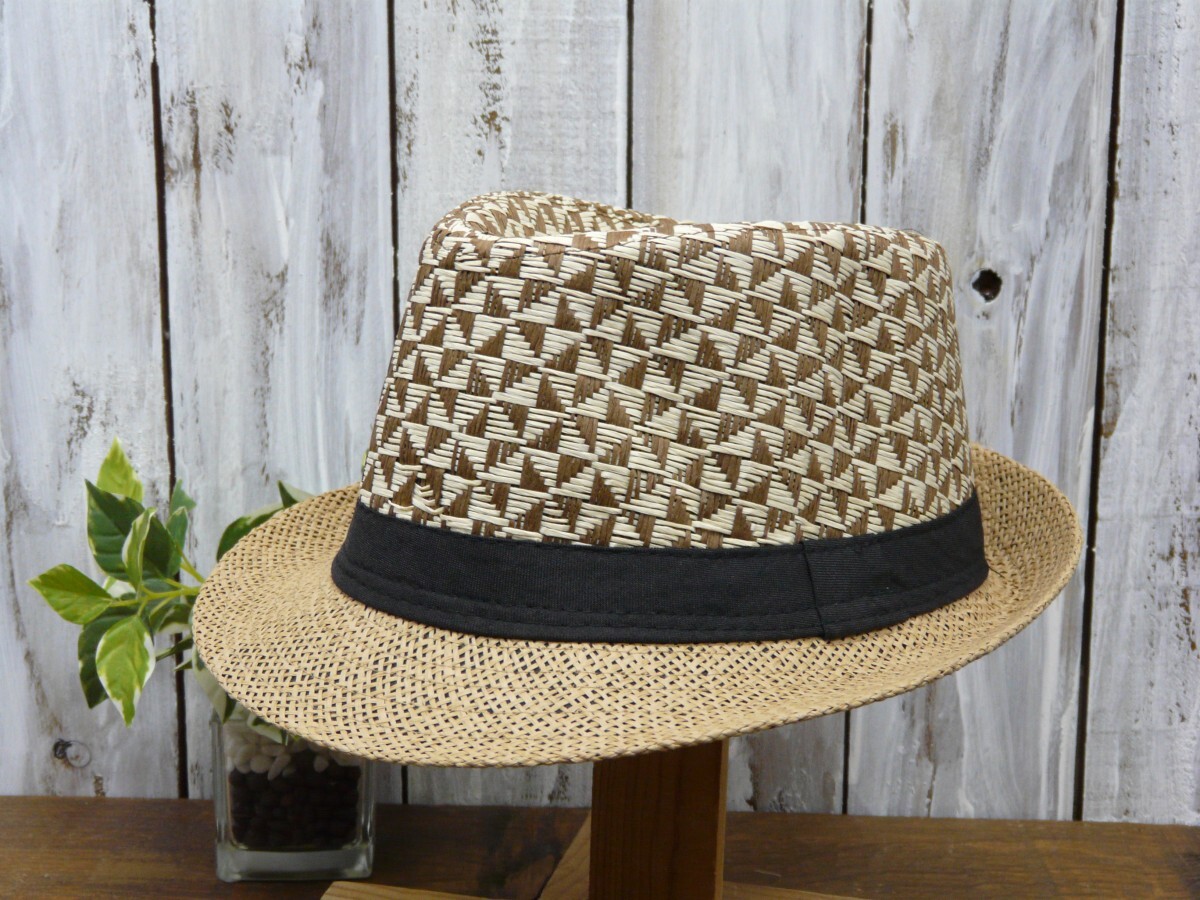 全国一律送料450円 ストローハット 編みこみ フェドラハット ブラウン 男女OK パナマ ボルサリーノ 麦わら 中折れ