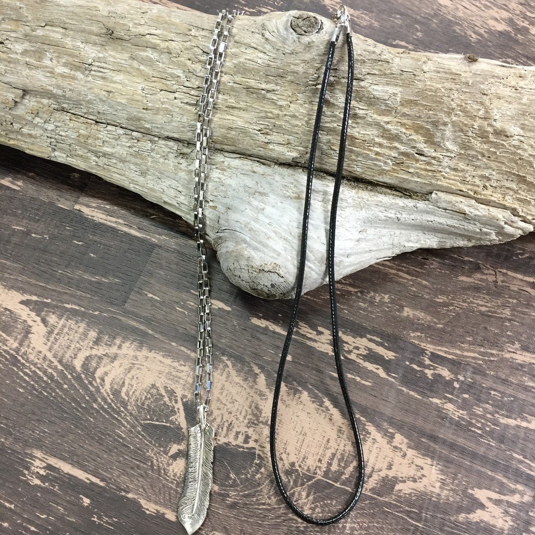 【C7002】送料無料 シルバー925 チャーム フェザー 羽 モチーフ ネックレス ペンダント アクセサリー チェーン スクウェア 50cm