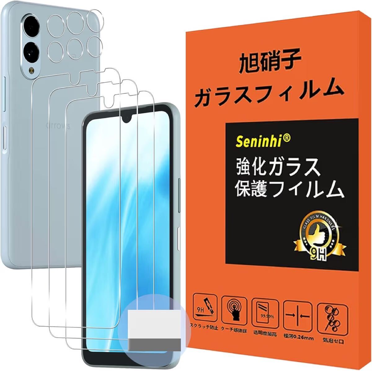 Seninhi 対応 Arrow We2 5G / F-52E / FCG02 ガラスフィルム + レンズ保護フィルム 指紋認証対応 【3+3枚セット-日本旭硝子製-高 品質 】アローズ We2 フィルム (3枚入り) + レンズフィルム (3枚入り)FCG02 強化ガラス F-52E 液晶保護 硬度9H 耐衝撃 飛散防止 貼り付け簡単 自動吸着 気泡ゼロ 指紋防止 ラウンドエッジ加工 超薄0.26mm 超高質感 SENHFL-WE2-TM6X