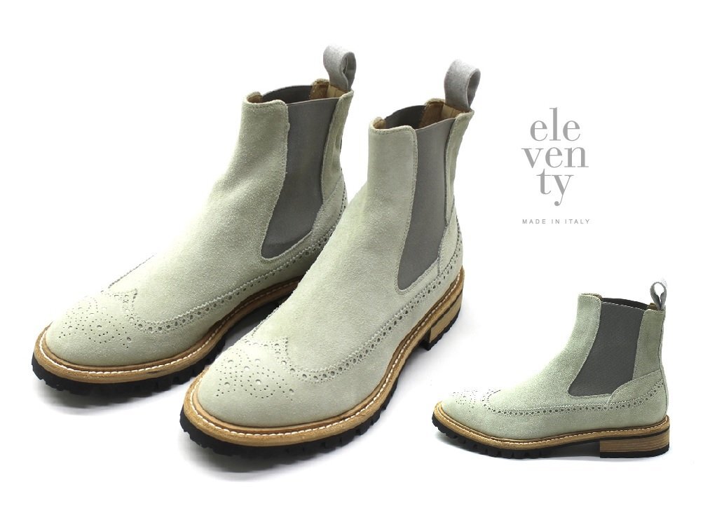 17万新品◆42=27cm◆eleventyイレブンティ イタリア製ウイングチップ スエードサイドゴアブーツ■ブルネロ■灰ライトグレー