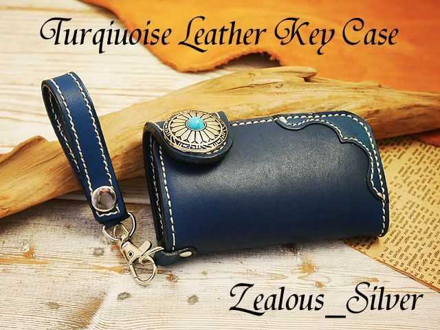1点物!!手染めヌメ革 レザーキーケース ハンドメイド スマートキ-
