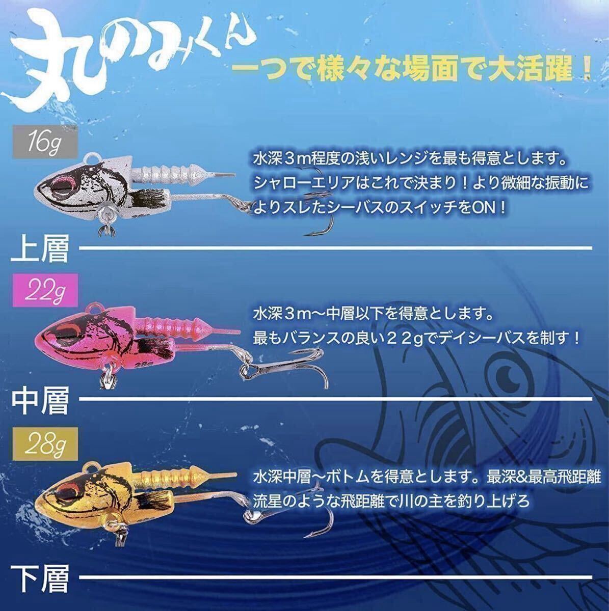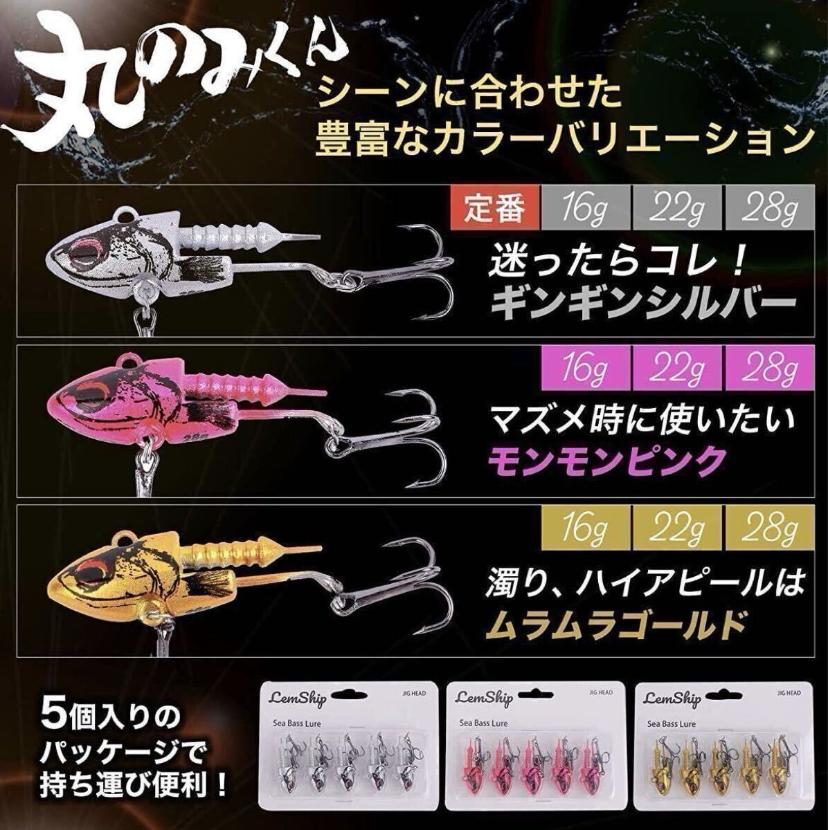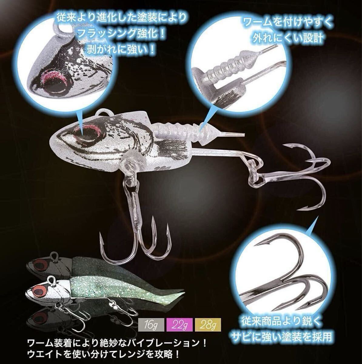 シーバスやヒラメをメインターゲットにしたバイブレーションジグヘッドです。16g、22g、28gと豊富なカラーバリエーションを用意しました。
