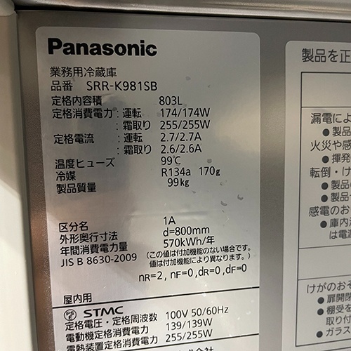 【業界最長1年保証】縦型冷蔵庫 パナソニック(Panasonic) SRR-K981SB 業務用 中古/送料別途見積