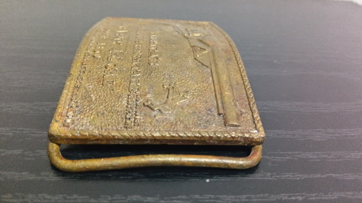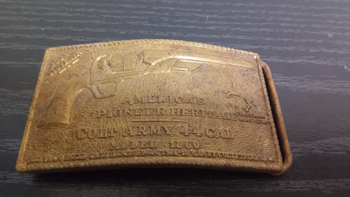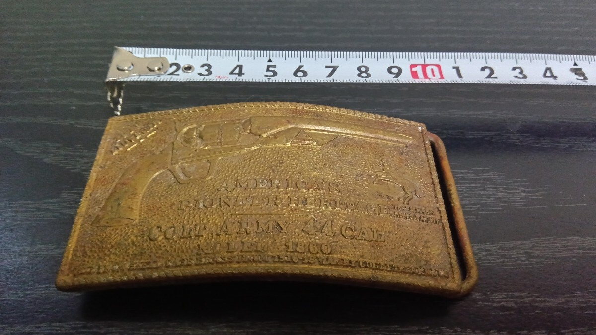 〇このバックルは、アメリカの開拓時代の遺産を称えるもので、表面には「AMERICA'S PIONEER HERITAGE」と「COLT ARMY 44 CAL. MODEL 1860」の文字が刻まれています。