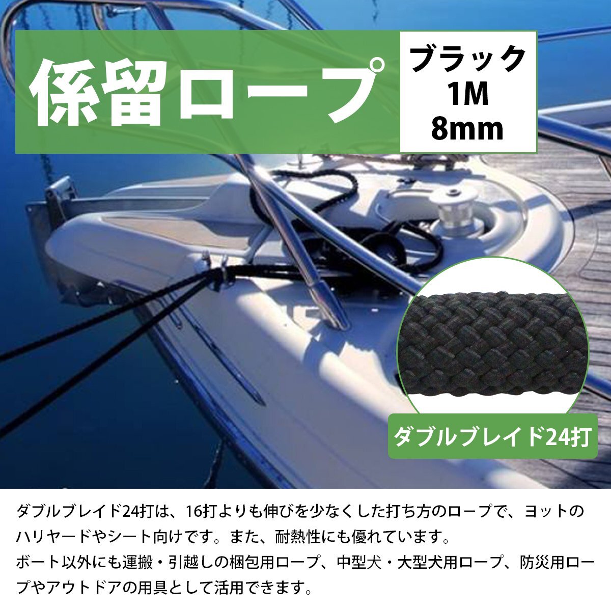 【送料無料】1m ~ 切り売り 24打 8mm 係留ロープ フェンダーロープ ダブルブレイド 黒/ブラック マリンロープ 船 係船 ロープ 8ミリ