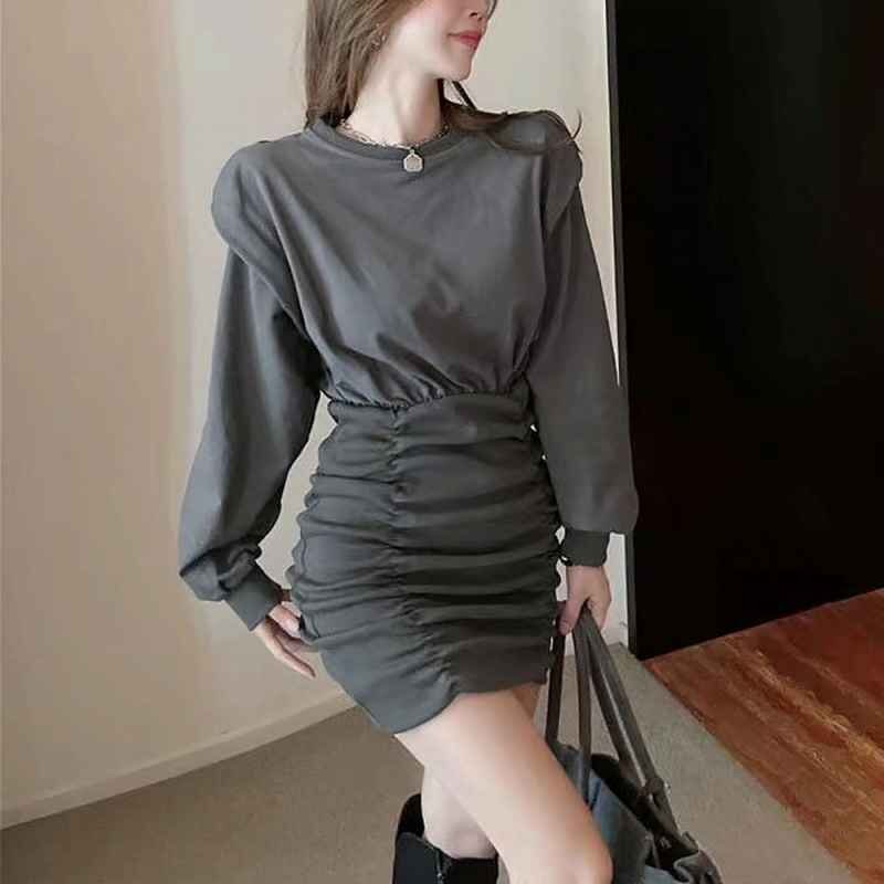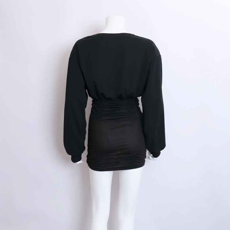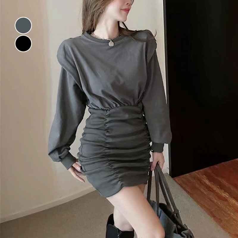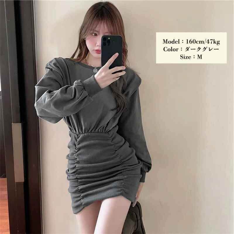 一見シンプルでありながら、ウエストのシルエットや、シャーリング仕様など細部に拘ったミニワンピース
