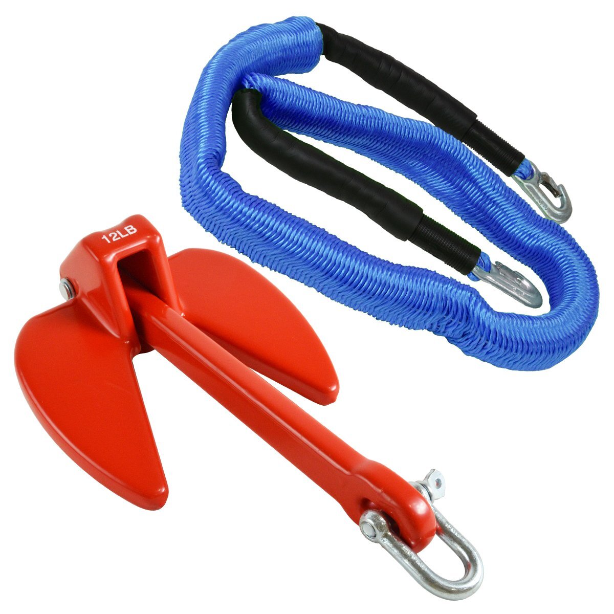 【新品即納】『伸縮ロープ/アンカーセット』ジェットスキー 爪型 アンカー 12LBS 5.5kg 赤 6M フロート のびのび アンカー ロープ 青