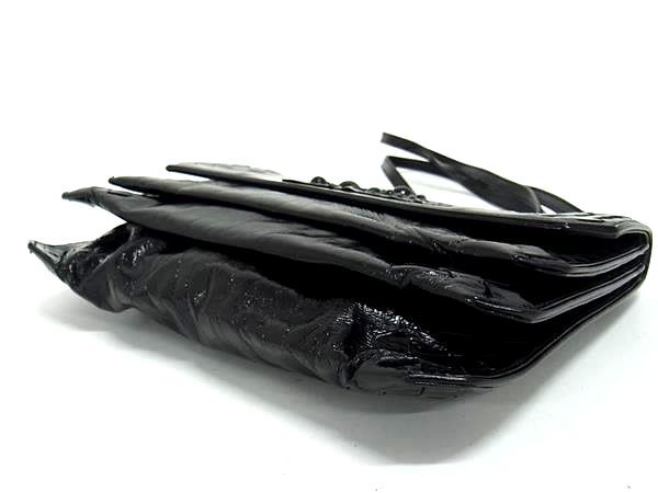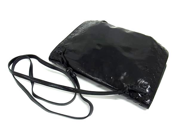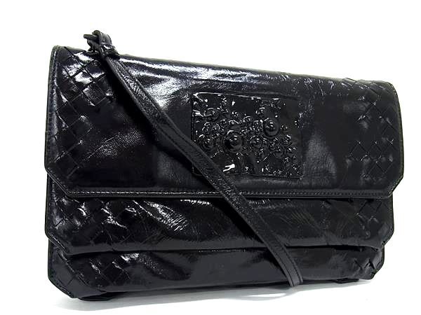 1円 ■美品■ BOTTEGA VENETA ボッテガヴェネタ イントレチャート パテントレザー クロスボディ ショルダーバッグ ブラック系 FR5453