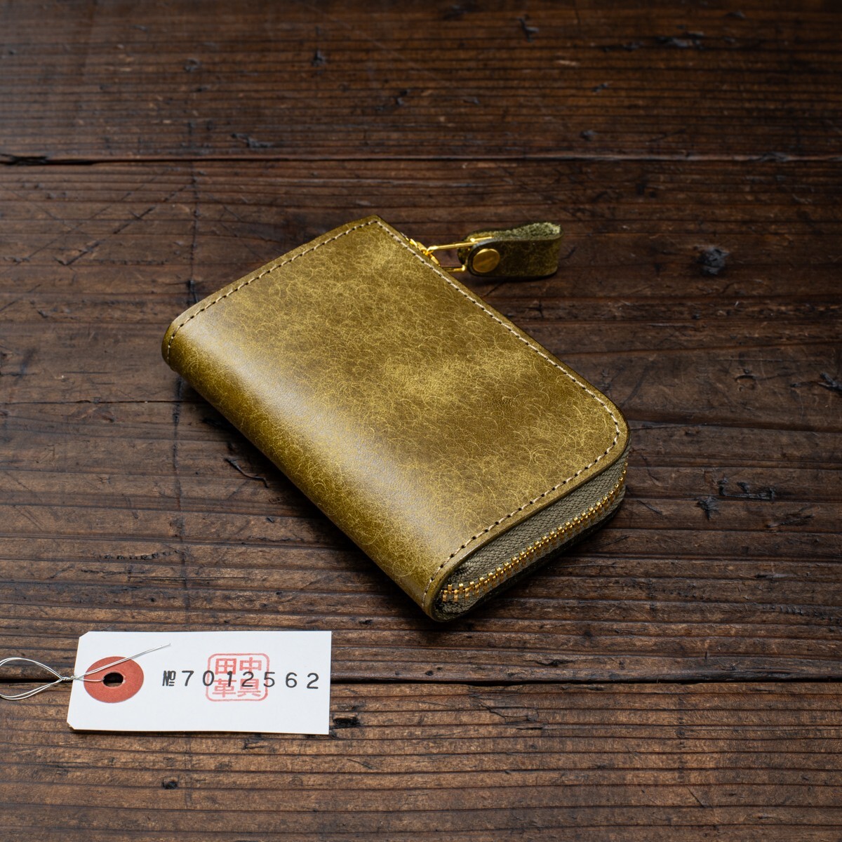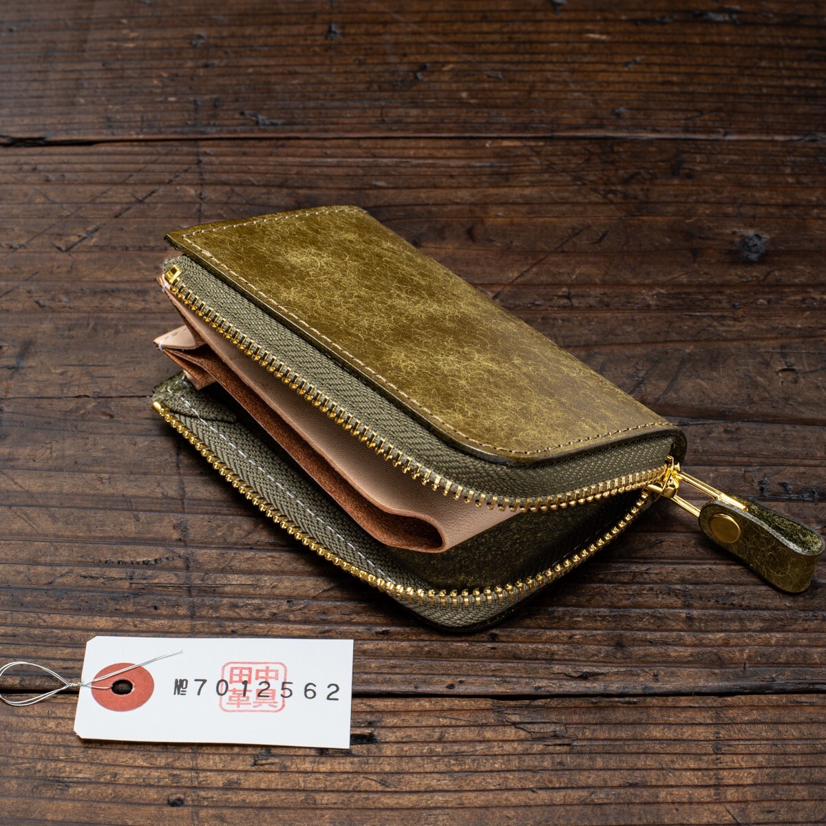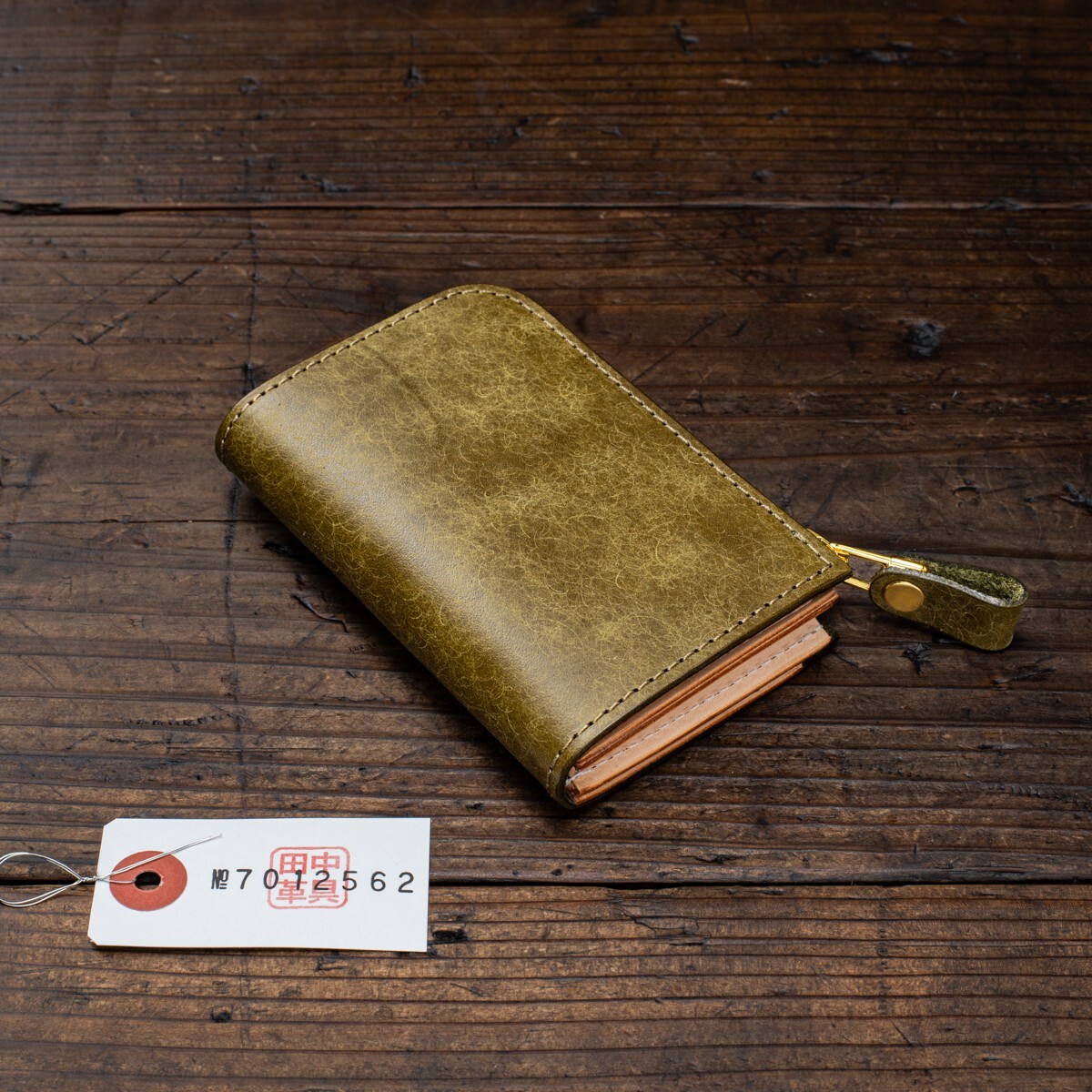 バケッタレザー【牛革】オリーブグリーン メンズ ミニ財布 L字ファスナー 新品 未使用 送料無料 1円 緑 コンパクト 本革 田中革具