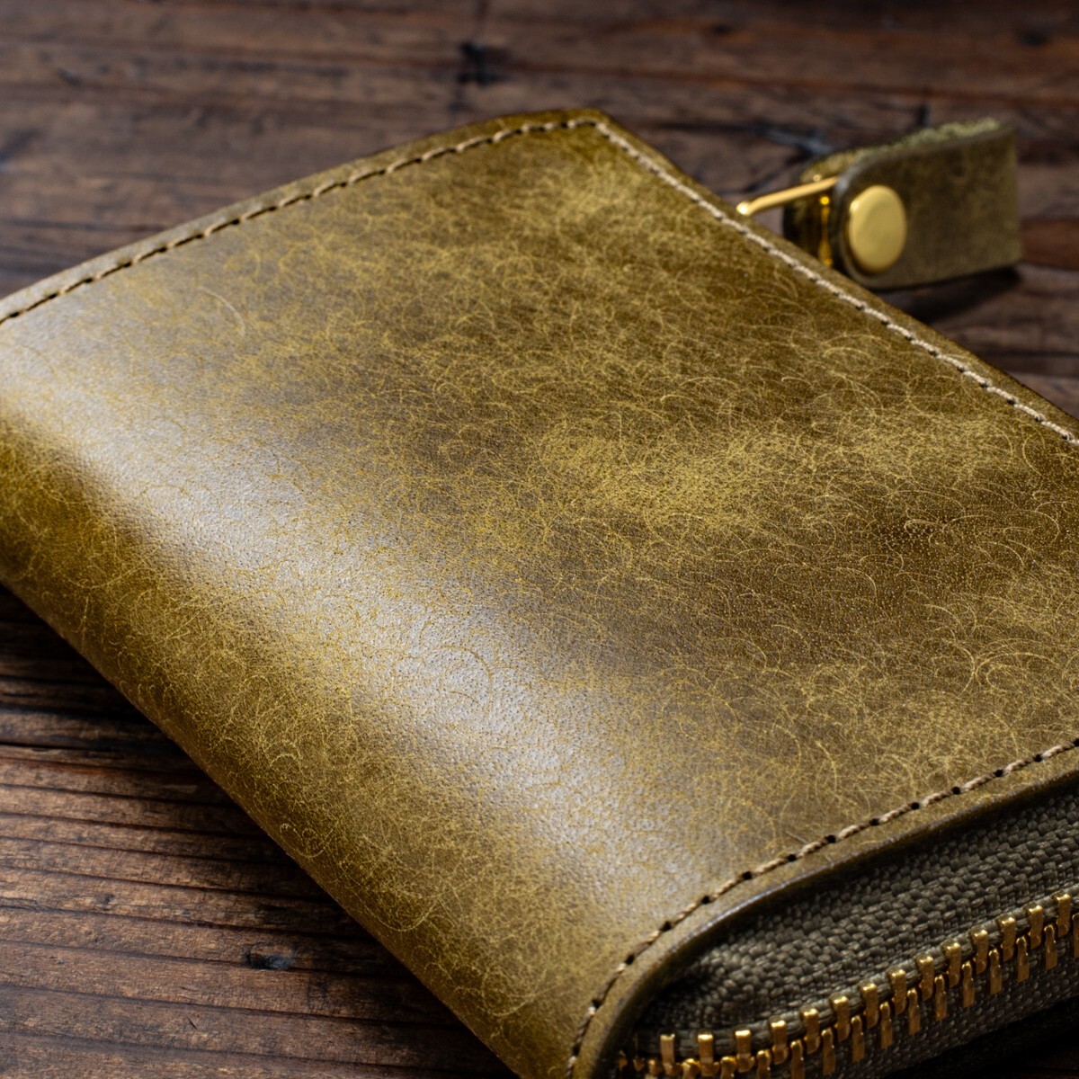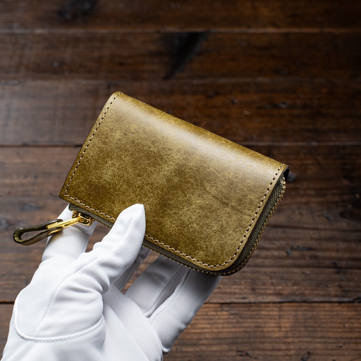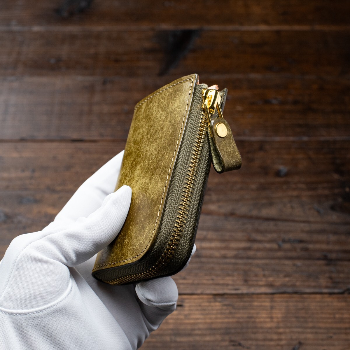 バケッタレザー【牛革】オリーブグリーン メンズ ミニ財布 L字ファスナー 新品 未使用 送料無料 1円 緑 コンパクト 本革 田中革具
