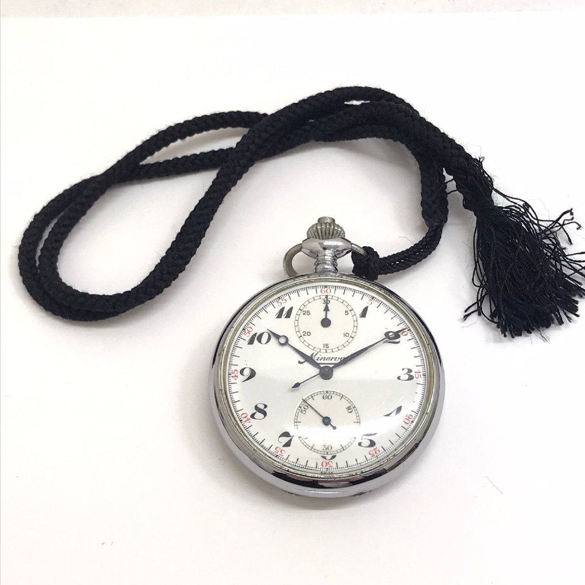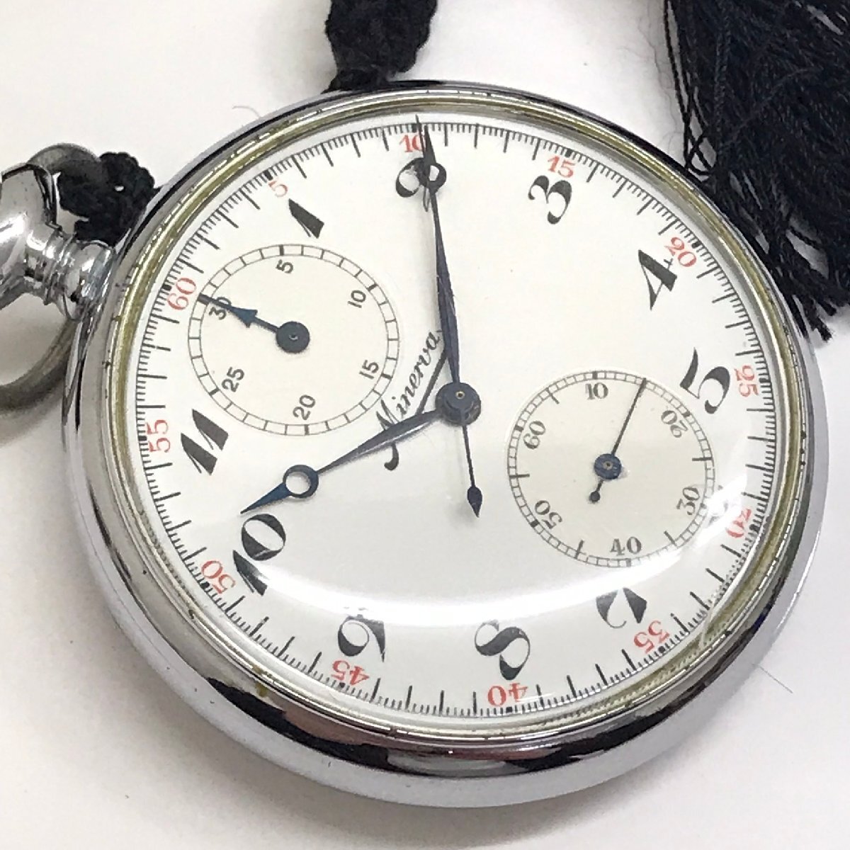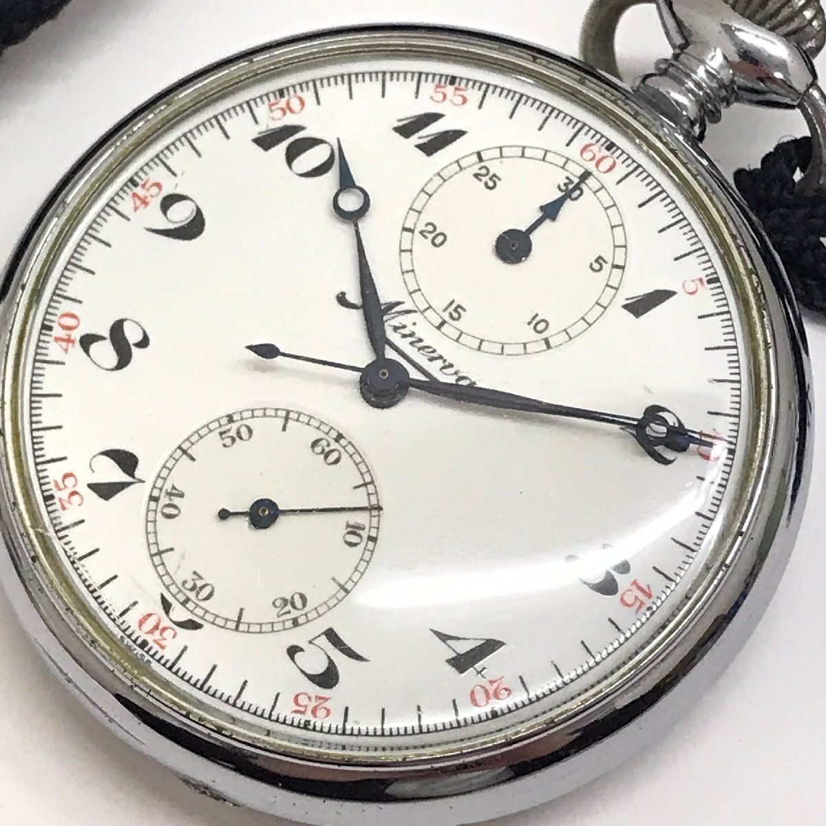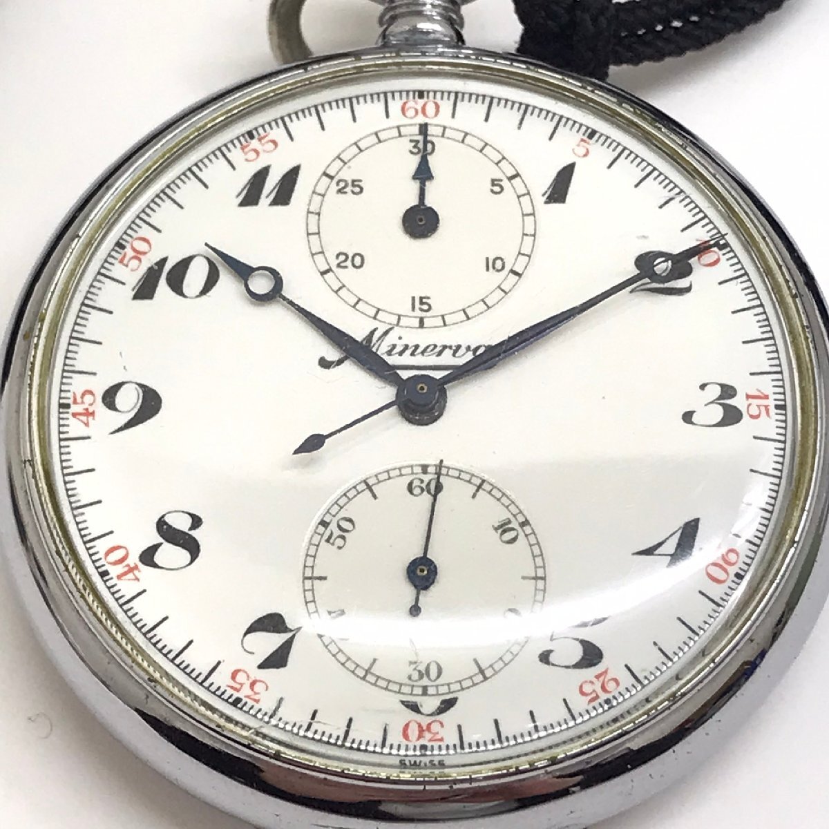 中古品 稼働品 ミネルバ Minerva 懐中時計 ストップウォッチ 記念品 手巻き 白文字盤 背面に刻印あり 質屋出品