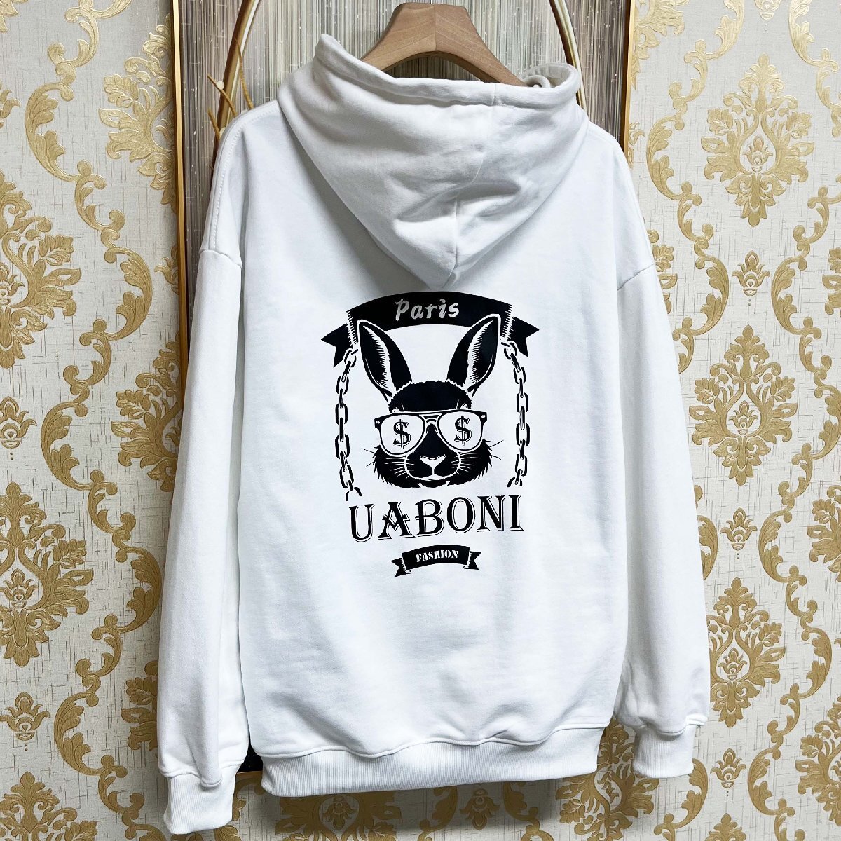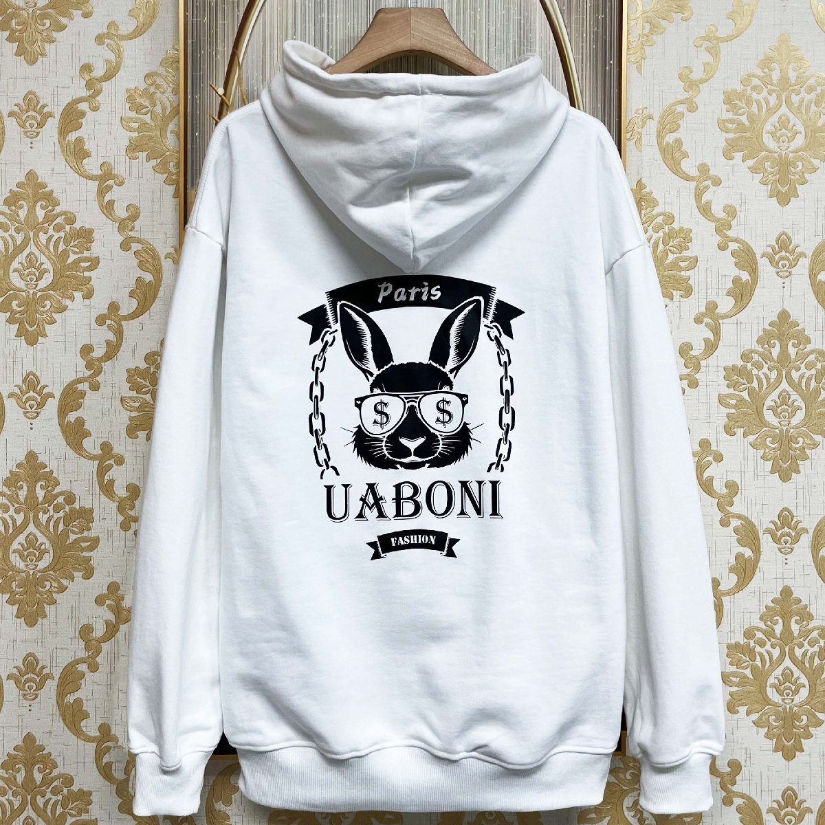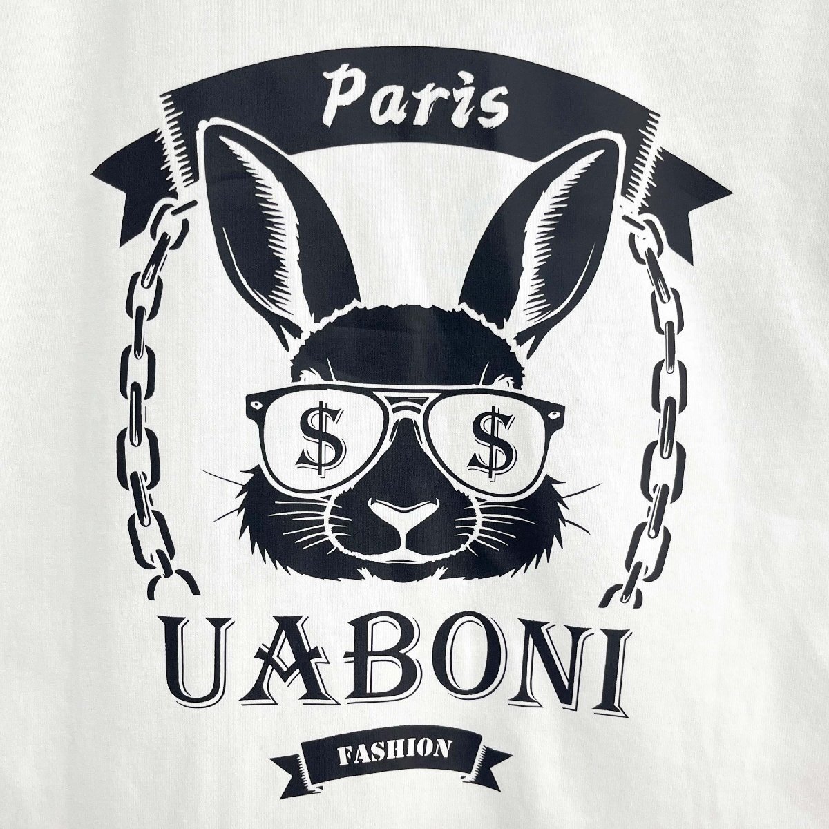 上級EU製&定価4万◆UABONI*Paris*パーカー*フランス*パリ発◆コットン100% 通気 ソフト ゆったり 長袖 ラビット カッコイイ 長袖 街着 L/48サイズ