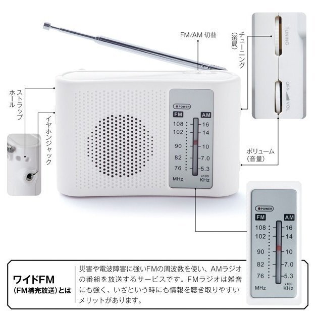ラジオ 防災 スピーカー付き FM AM ワイドFM対応 小型 アウトドア 防災 乾電池式 スポーツ観戦 送料無料 100T◇ WIDEラジオ:グレー