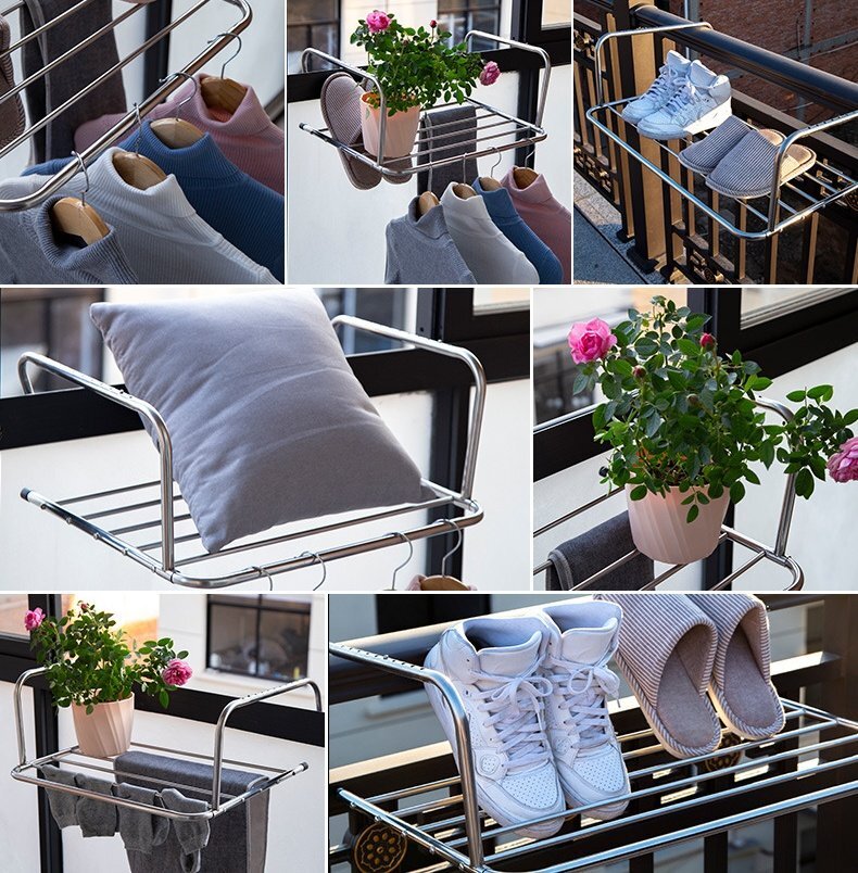 洗濯物を干す以外にもキッチンや浴室のタオルラックとして、植木やインテリアの物置棚としてなど、多用途に使用することができます。