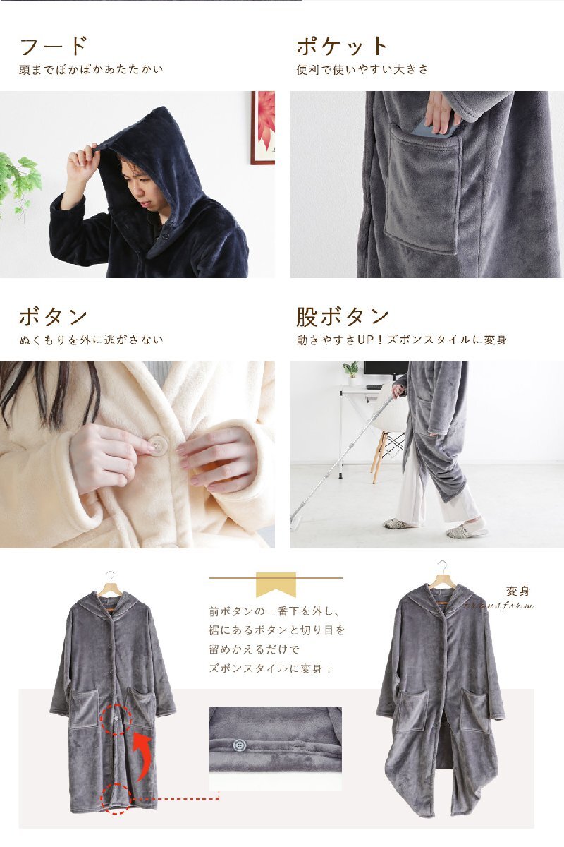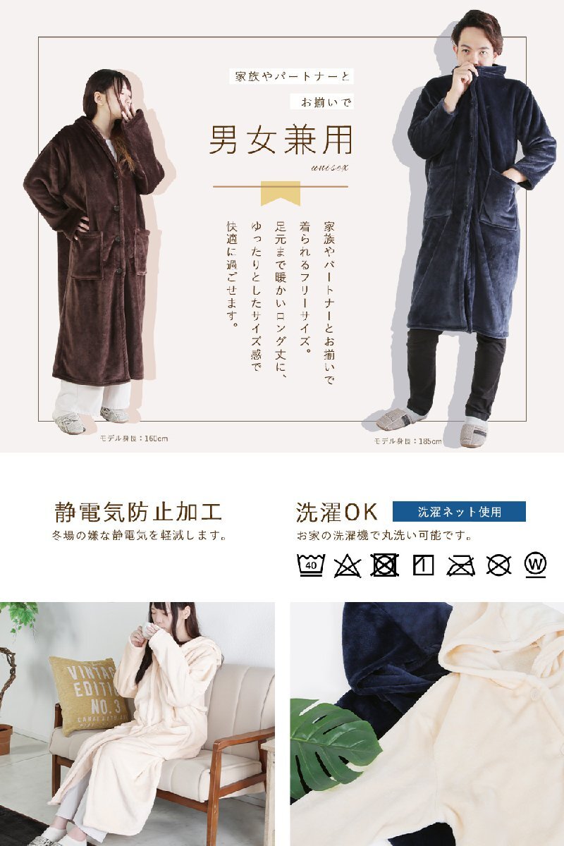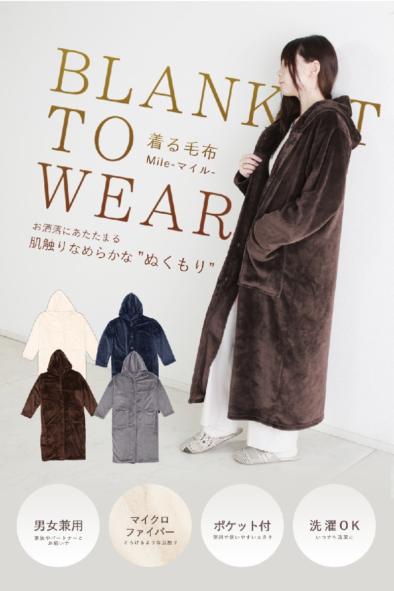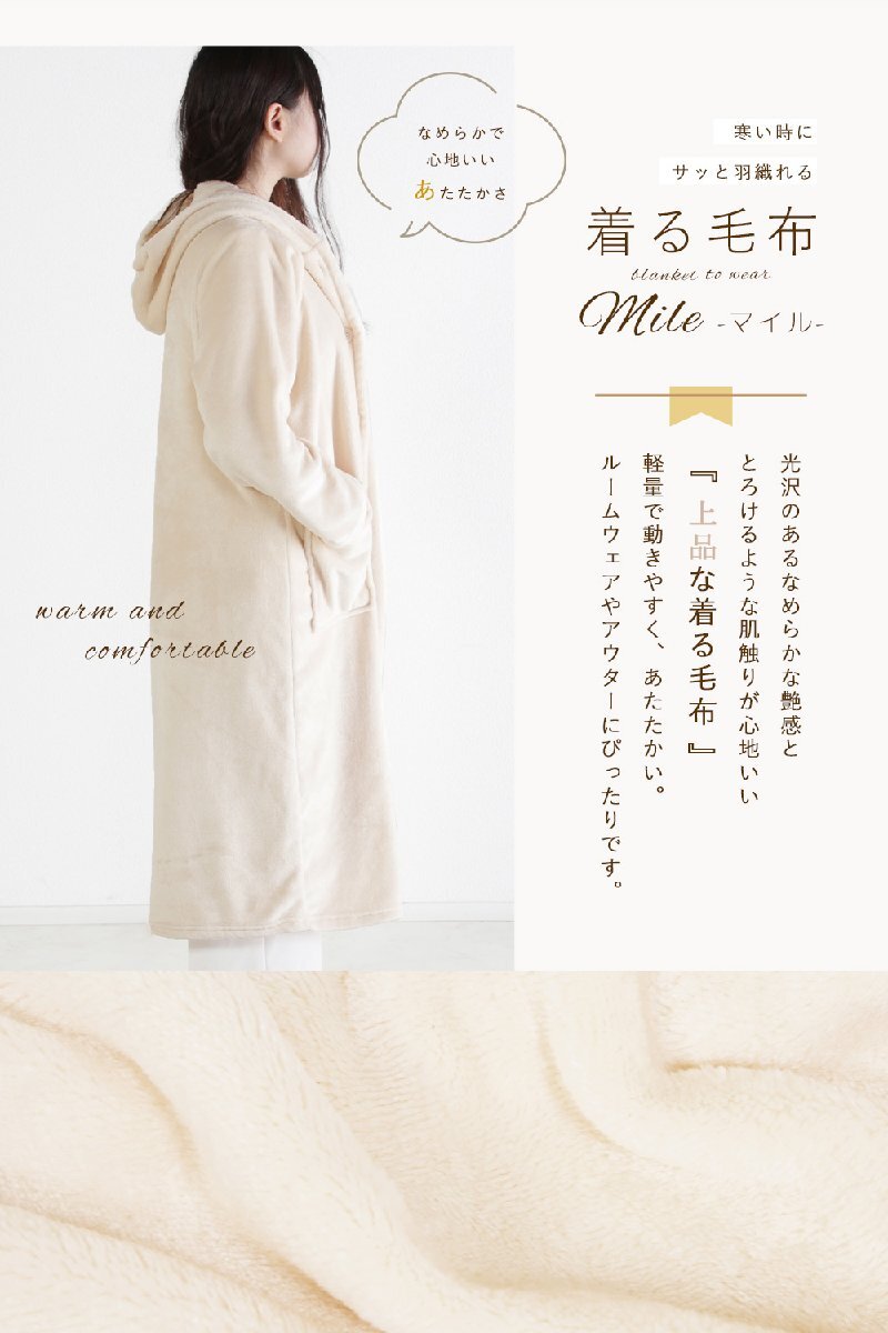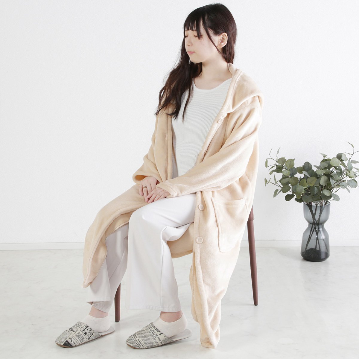着る毛布 ルームウェア フリーサイズ 男女兼用 120cm あったか 冬 マイクロファイバー ガウン 静電気防止 ポケット 洗える アイボリー