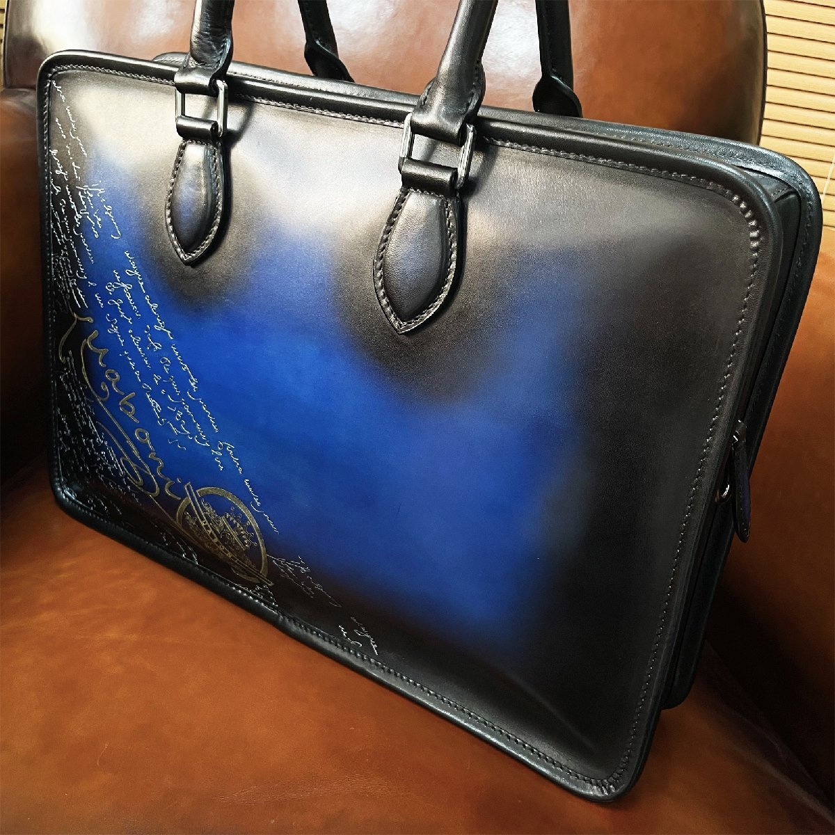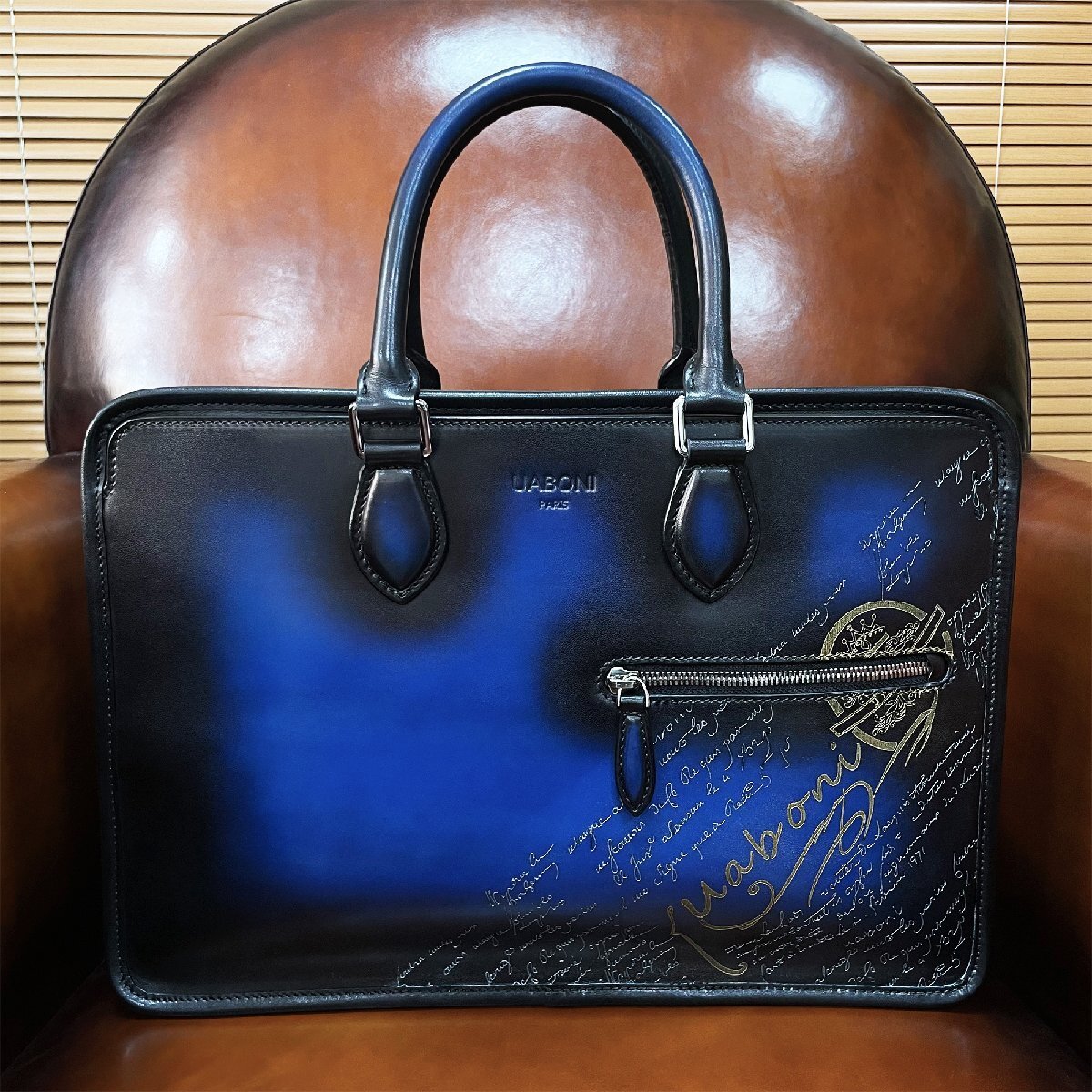 最高級 EU製 定価38万◆UABONI*ユアボニ*幻のパティーヌ*ブリーフケース◆ビジネスバッグ 手染 トートバッグ 本革 UN JOUR ベルルッティ