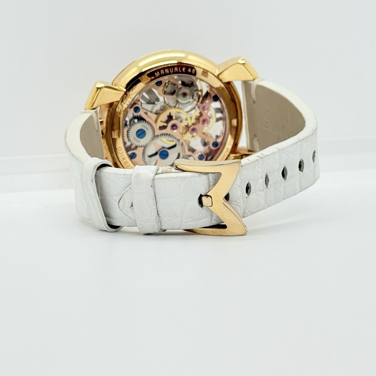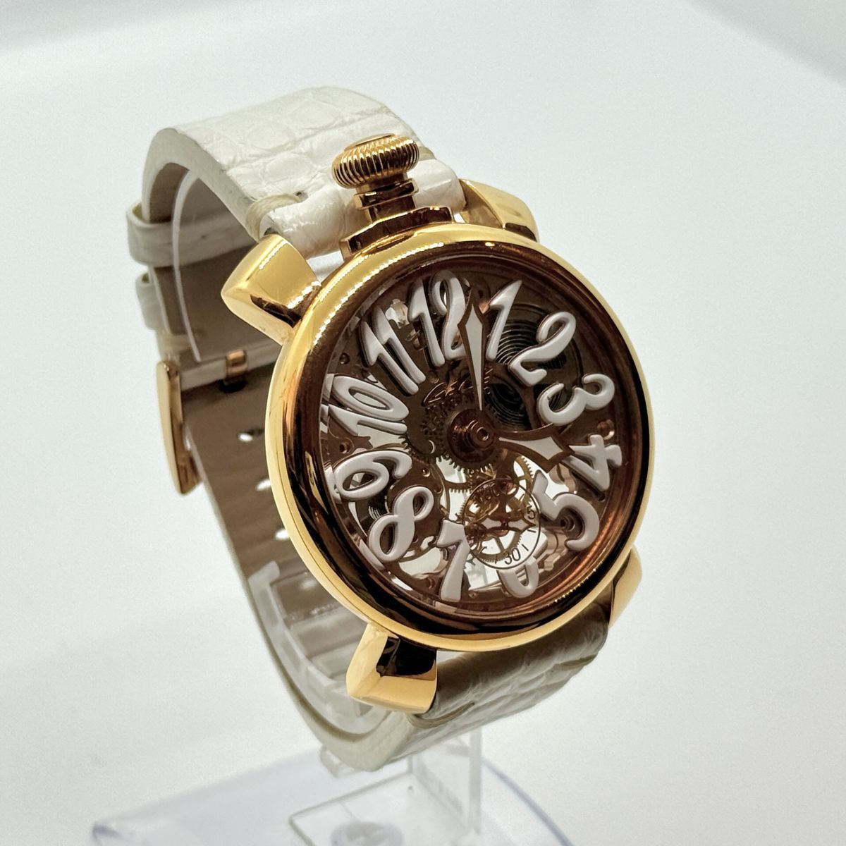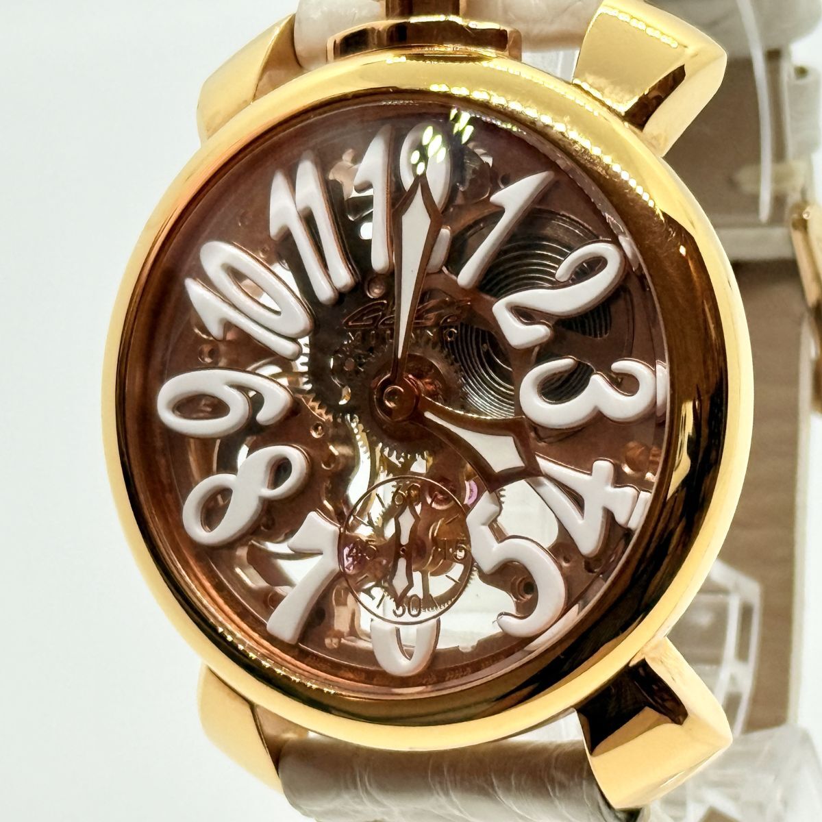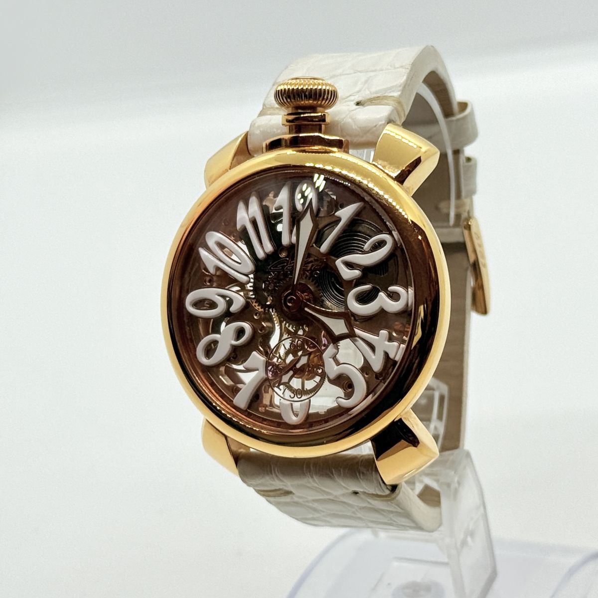 GaGa MILANO ガガミラノ マヌアーレ48 N.48217 手巻き 稼働品 スケルトン文字盤 スモセコ GP×革 メンズ 腕時計