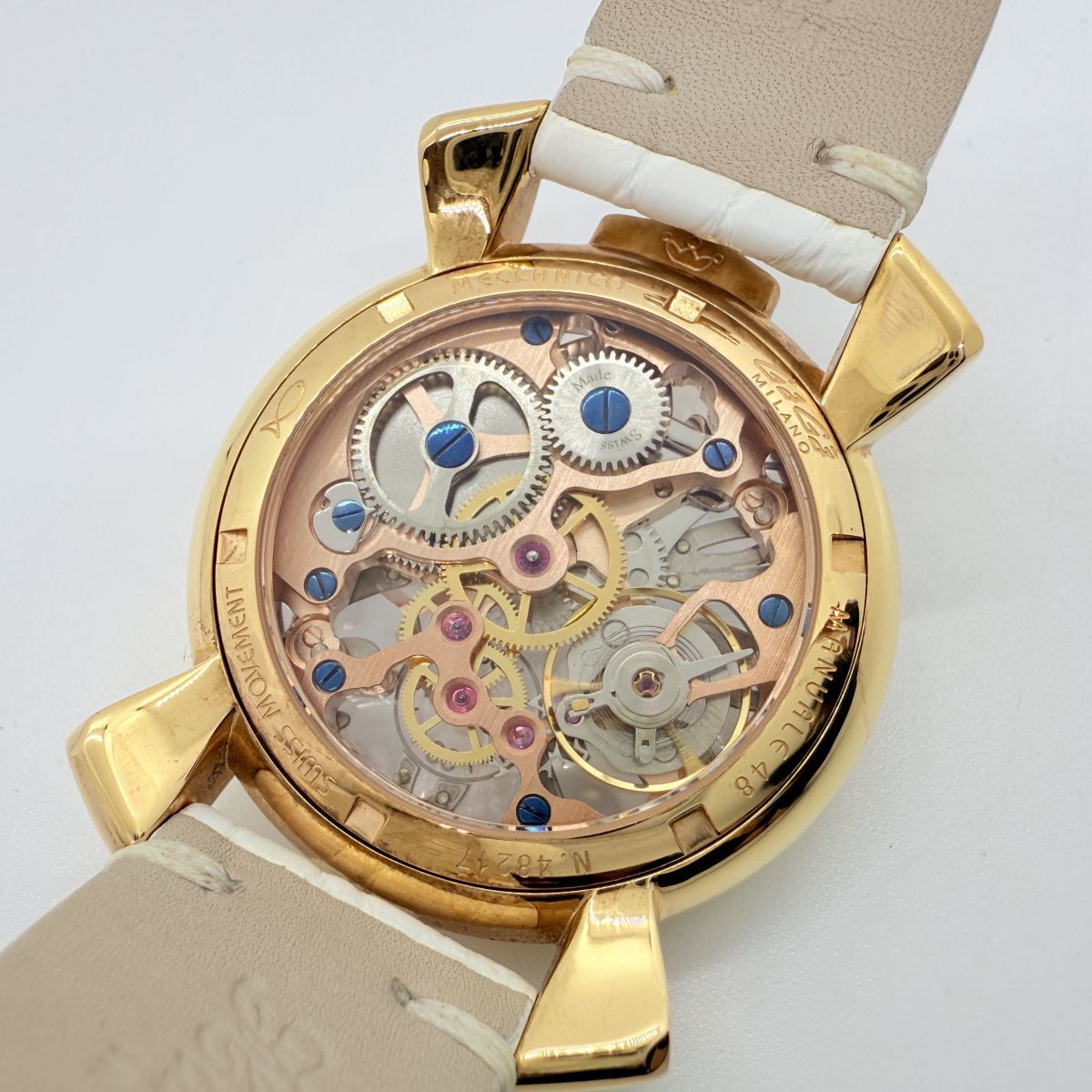 M9156 【美品】GaGa MILANO ガガミラノ マヌアーレ48 N.48217 手巻き 稼働品 スケルトン文字盤 スモセコ GP×革 メンズ 腕時計