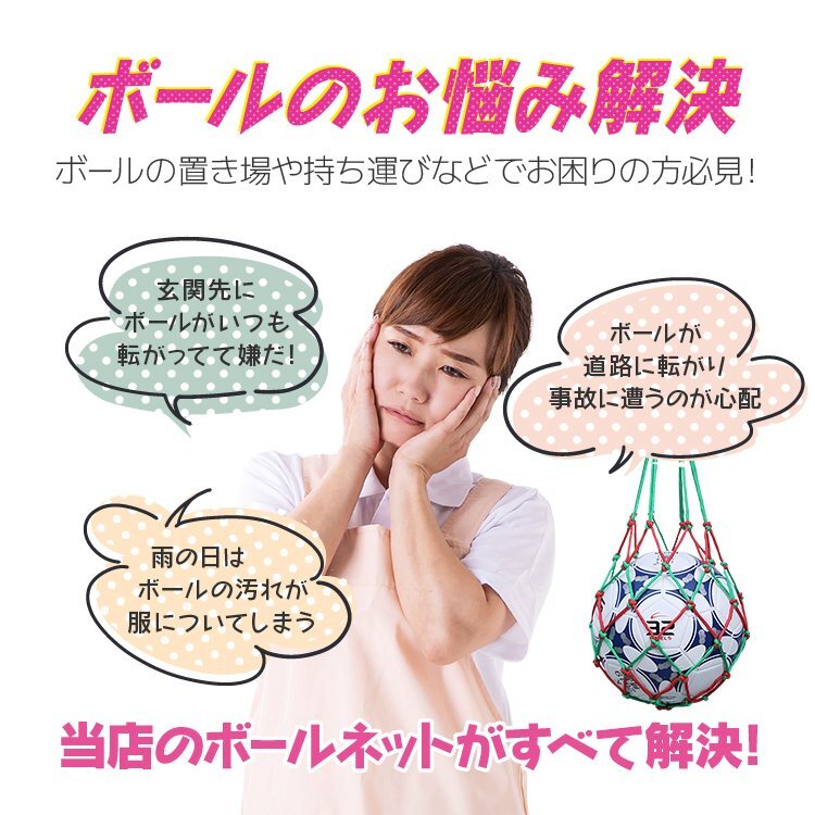 サッカーボールをはじめ、様々なボールの持ち運びや収納に便利なボールネットです。
