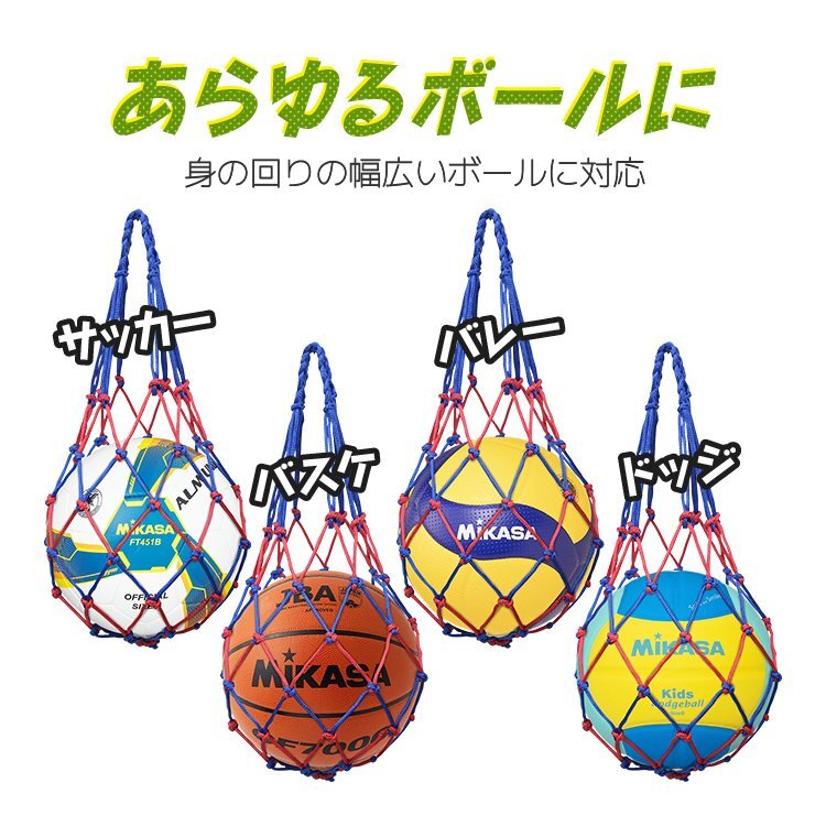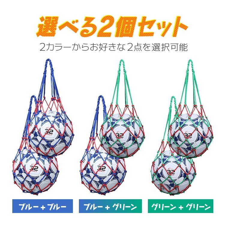 ◆ボールネット 2個セット 網袋 ボールバッグ ボール入れ ボール収納 丈夫 持ち運び 保管用 サッカーボール/バスケットボール/バレーボール/ドッジボールなどに【赤青1枚+赤緑1枚】BALNT02S