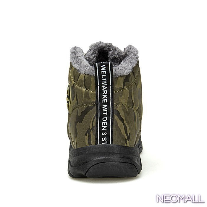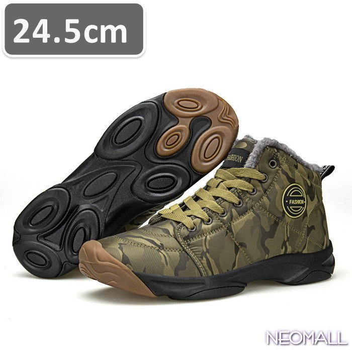 メンズ スノーシューズ 【864】 24.5cm 迷彩グリーン ムートンブーツ スニーカー ウィンターブーツ 裏起毛 防水 防寒 防滑 冬用靴 綿靴