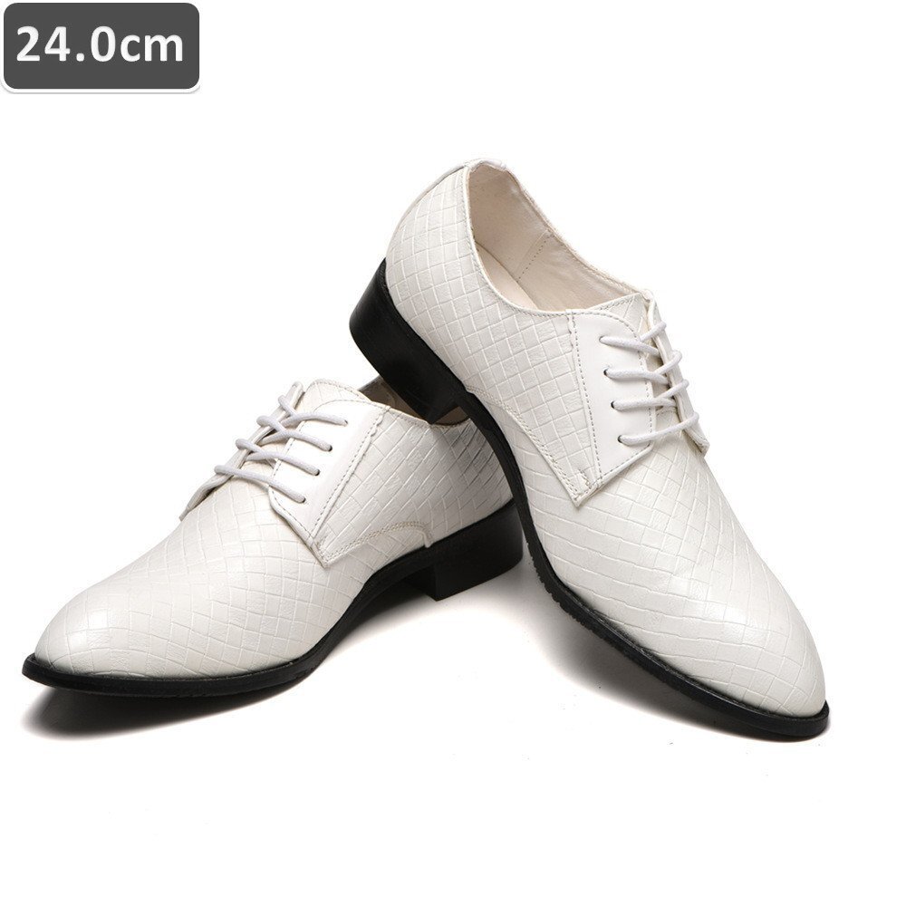 人気商品 ☆ メンズ ビジネス レザー シューズ ホワイト サイズ 24.0cm 革靴 靴 カジュアル 屈曲性 通勤 軽量 仕事 【612】