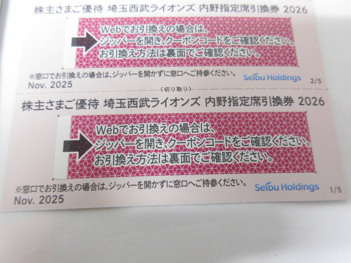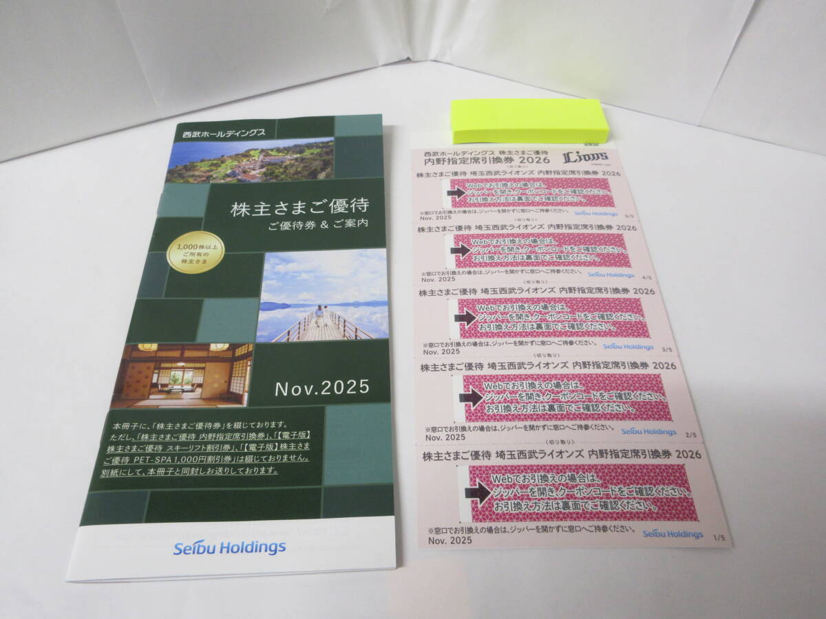 | ☆西武ホールディングス 株主優待 冊子 2026年5月31日期限 & 埼玉西武ライオンズ 内野指定席引換券×5枚 西武HD 未使用☆ | |