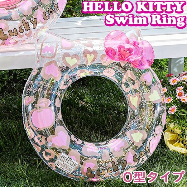 ハローキティ ☆ヒョウ柄☆ スイムリング O型 浮き輪 子供 キッズ 女の子 キティー フロート 浮輪 足入れ プール 取っ手付き 水遊び リボン
