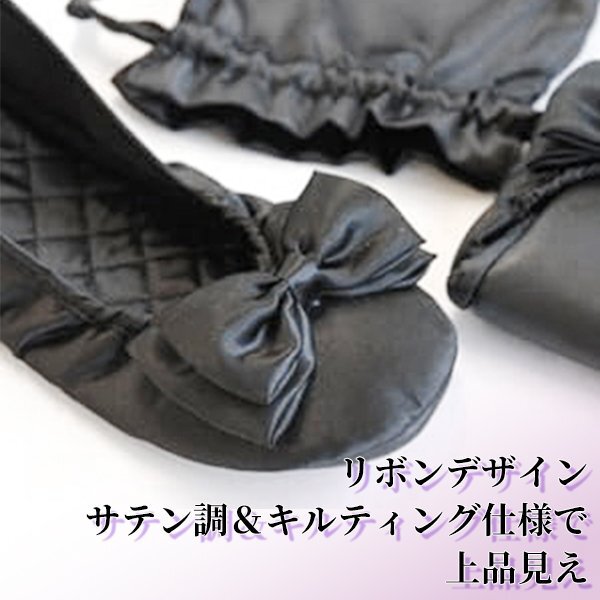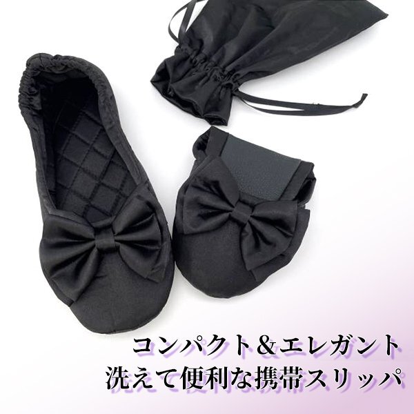 携帯用 リボン付き 折りたたみ スリッパ 収納袋付き | ||||